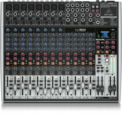 BEHRINGER XENYX X2222USB - 22-канальний мікшер з підгрупами 2/2, мікрофонними попередніми підсилювачами XENYX, компресорами, класичним «британським» еквалайзером, 24-бітним процесором ефектів і аудіоінтерфейсом USB.