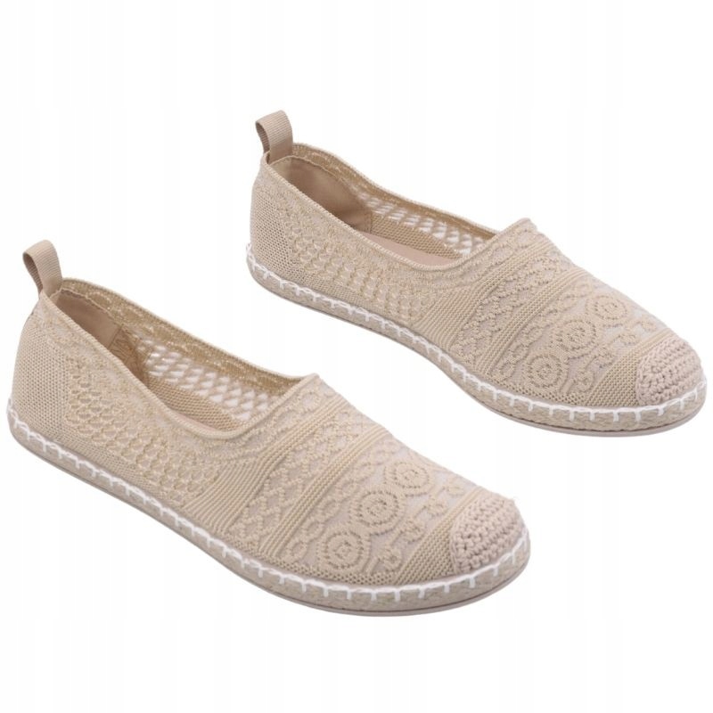 Beige Espardele Жіноча відкрита робота ковзала плоскі взуття зручне взуття