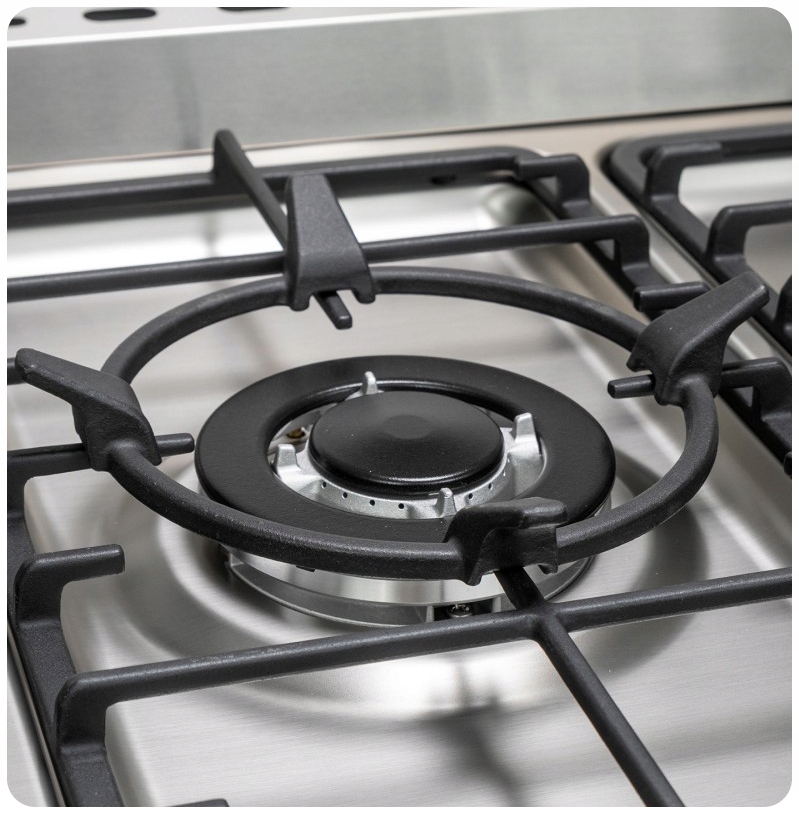 Кухня обладнана п’ятьма газовими пальниками, включаючи один тип вока, діаметром до 14 см.