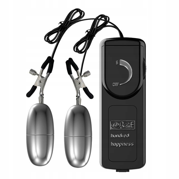 унікальні затискачі для сосків з вібрацією. Металеві легкі затискачі з гумовими кінчиками, на яких вібруючі яйця підвішені. еротичний.
