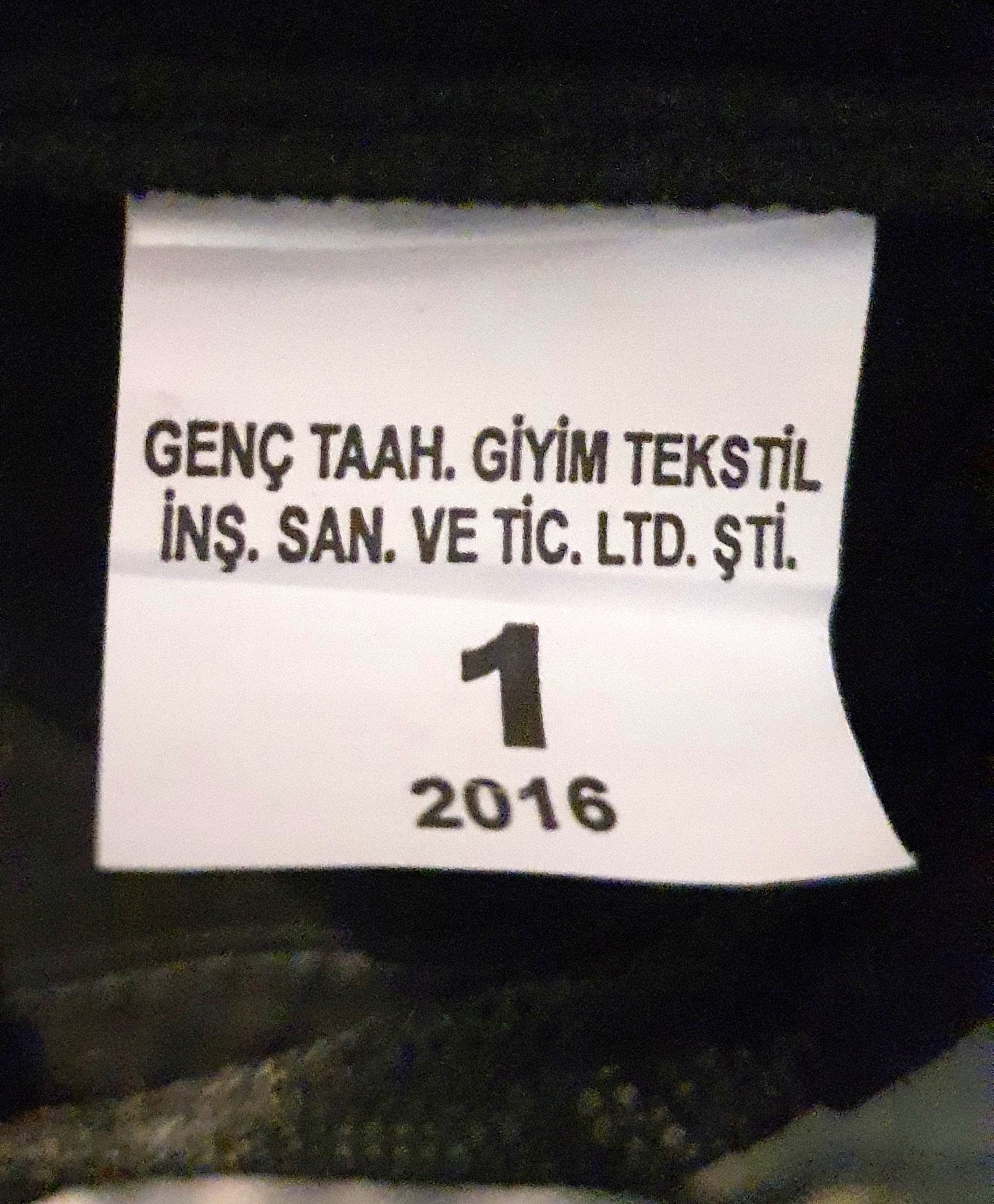 Продукт виготовлено GENÇ TAAH. GİYİM TEKSTİL İNŞ. SAN. VE TİC. LTD. ŞTİ. у 2016 (інформація з етикетки).