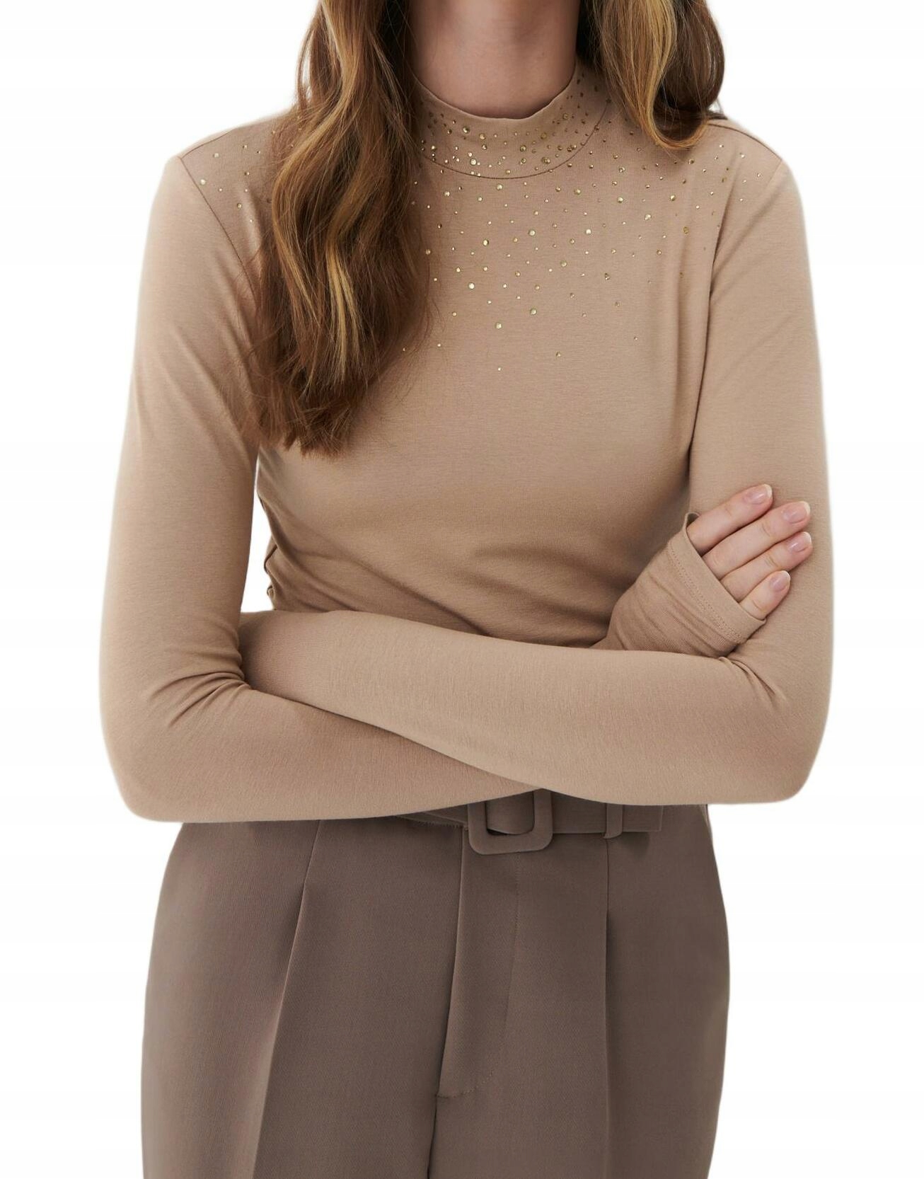 Бежева класична гладка блузка з блискітками декольте з довгими рукавами m