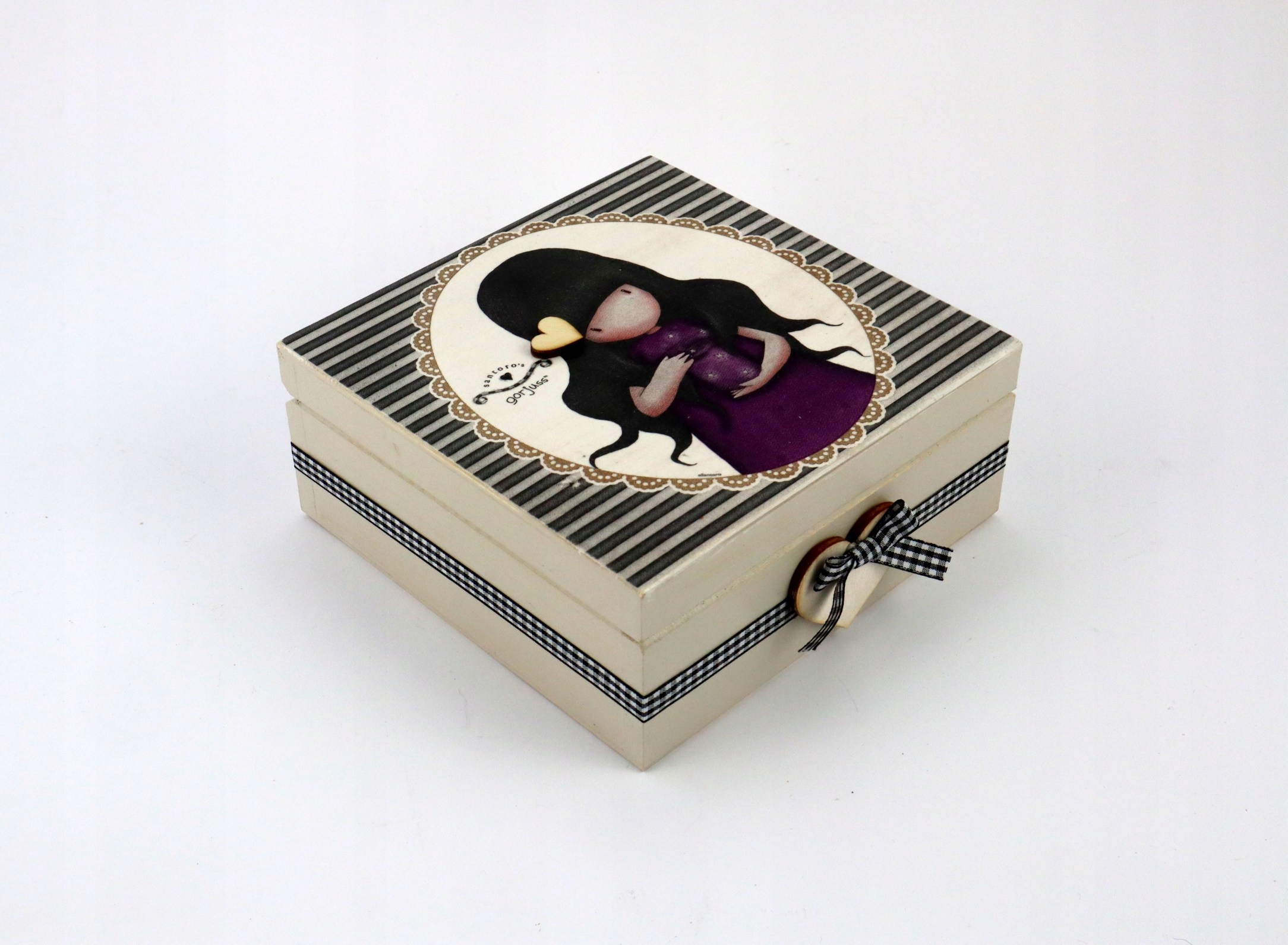 Бежева шкатулка зі стрічкою-сердечком у формі дівчини