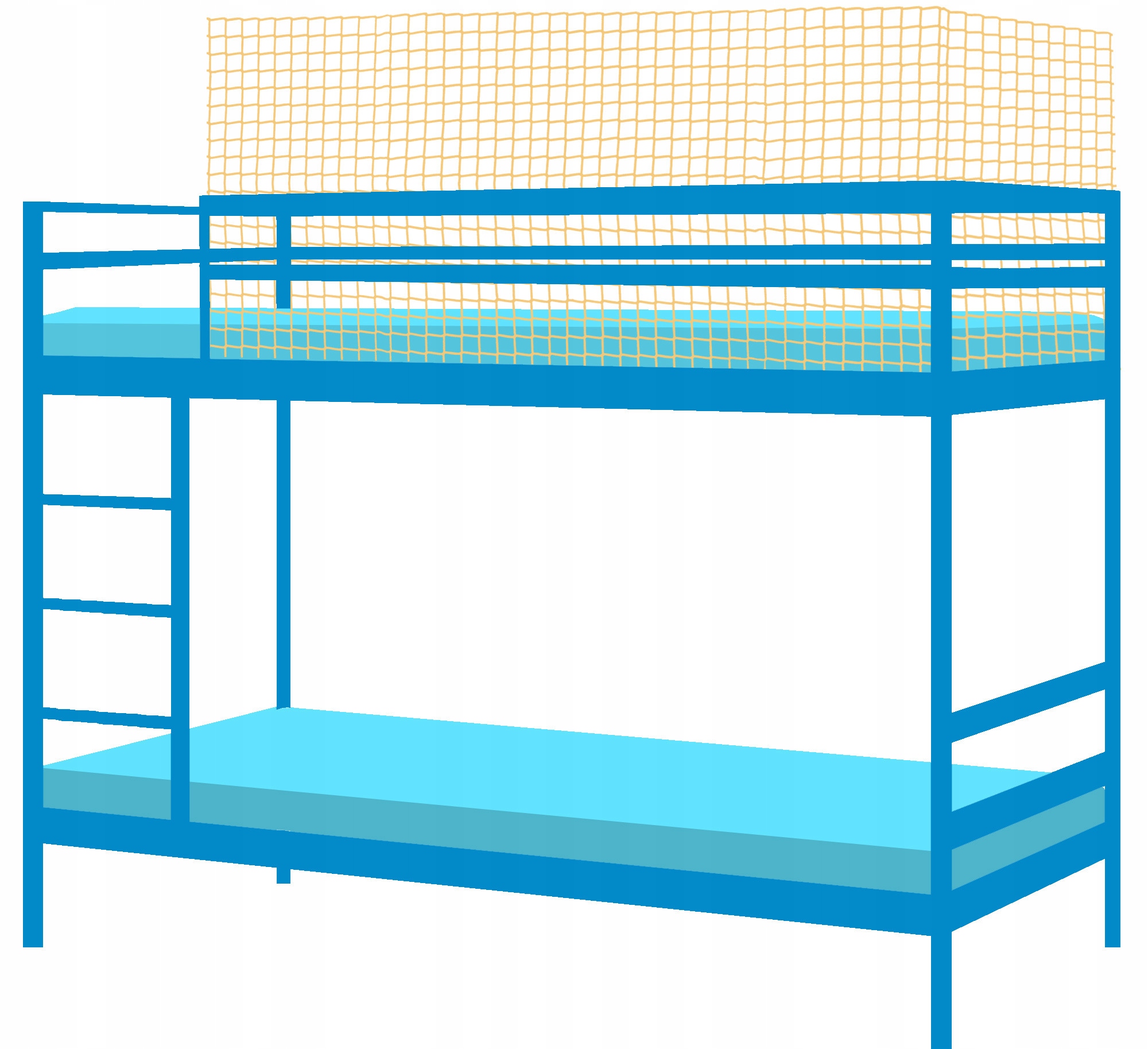 Бежева захисна сітка з опліткою, що захищає двоярусне ліжко на антресолі
