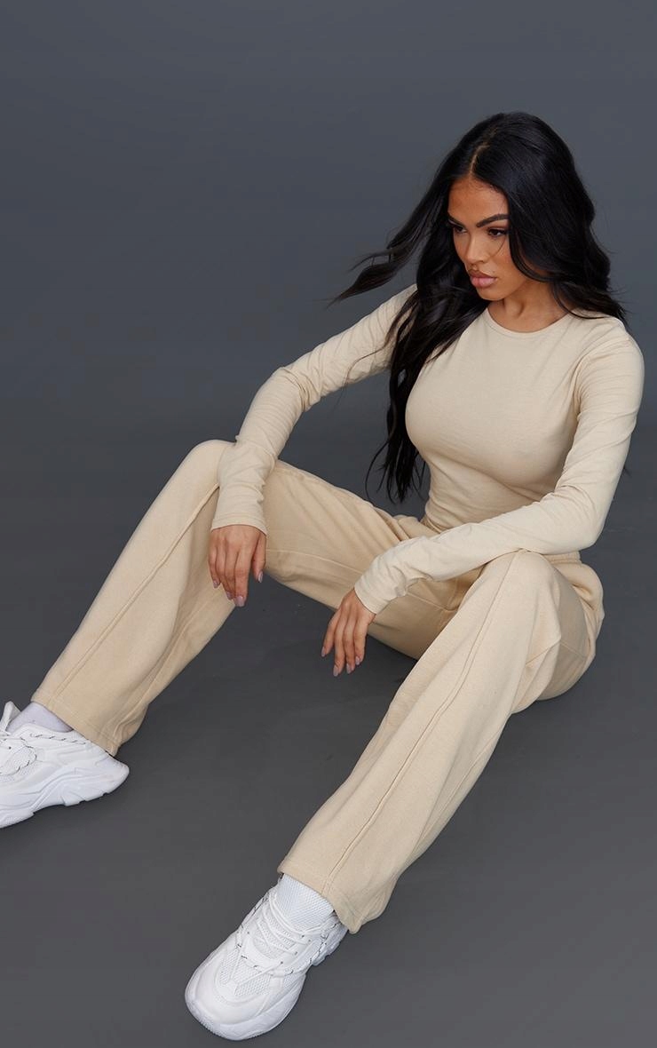 БЕЖЕВЕ ОБТАЛЕНЕ ГЛАДКЕ БОДИ З ДОВГИМ РУКАВОМ PRETTYLITTLETHING M