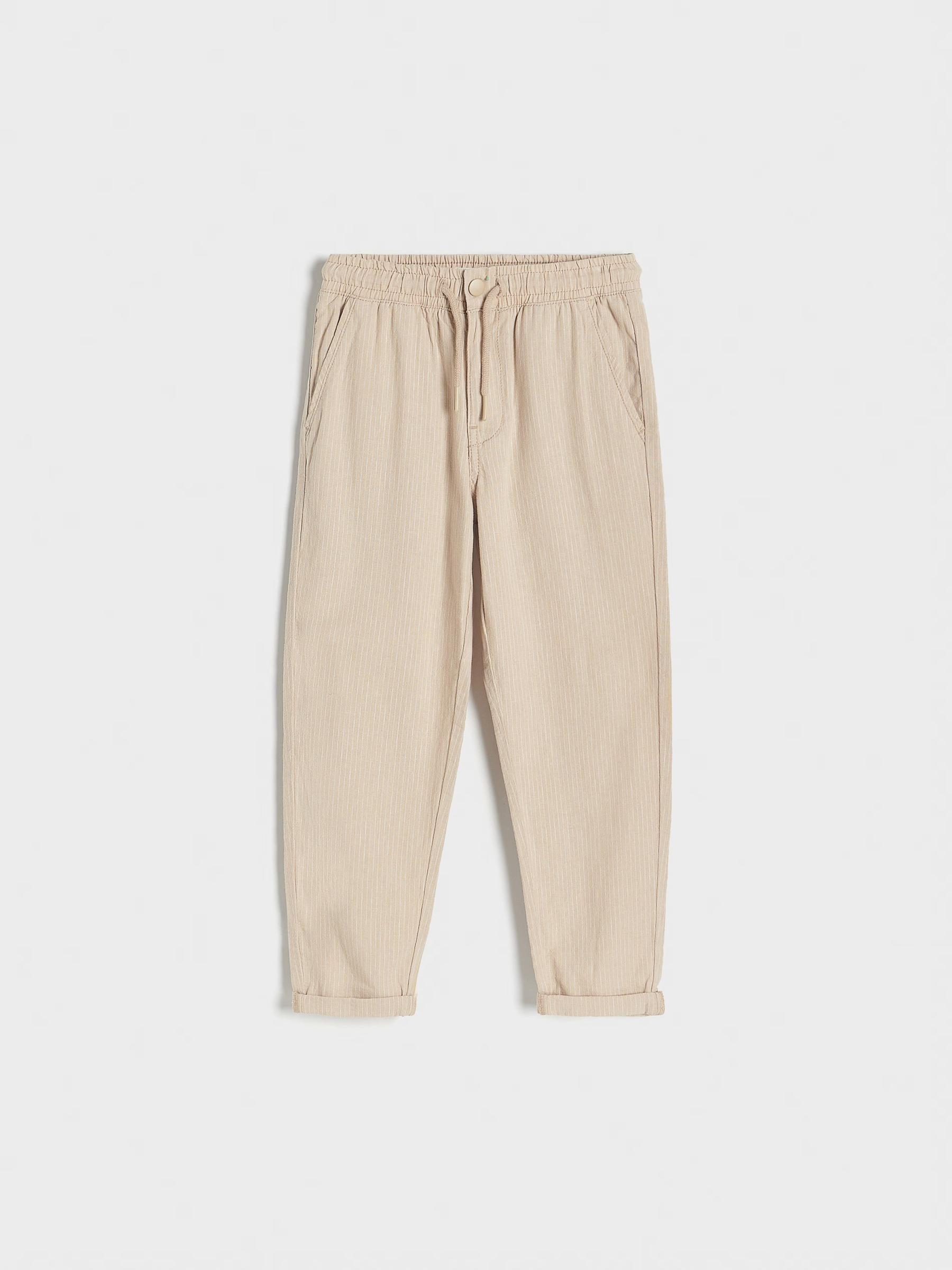 БЕЖЕВІ БАВОВНЯНІ ШТАНИ, ТИПУ ЧІНО, ЗАВ'ЯЗАНІ НА ТАЛІЇ, ЗАБЕЗПЕЧЕНІ СМУЖКИ 170