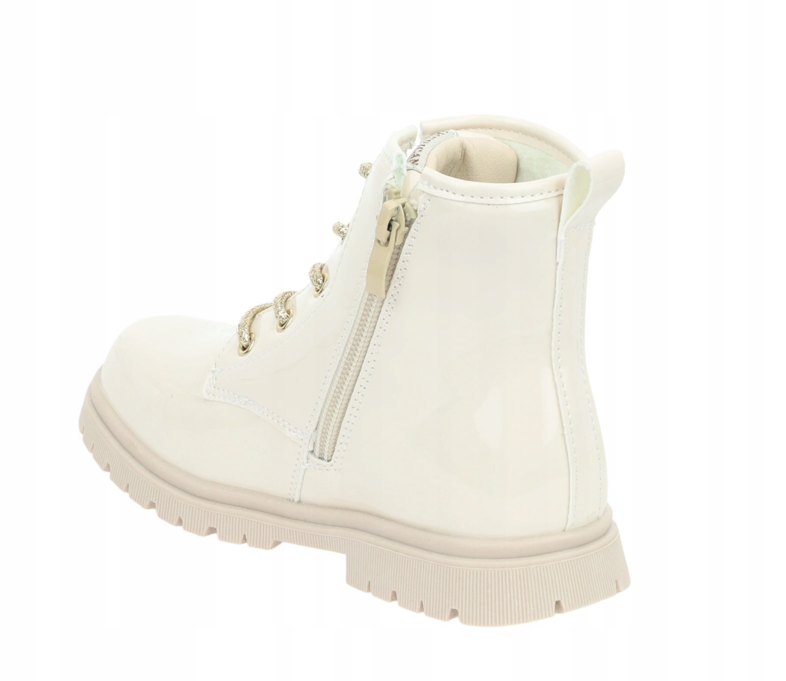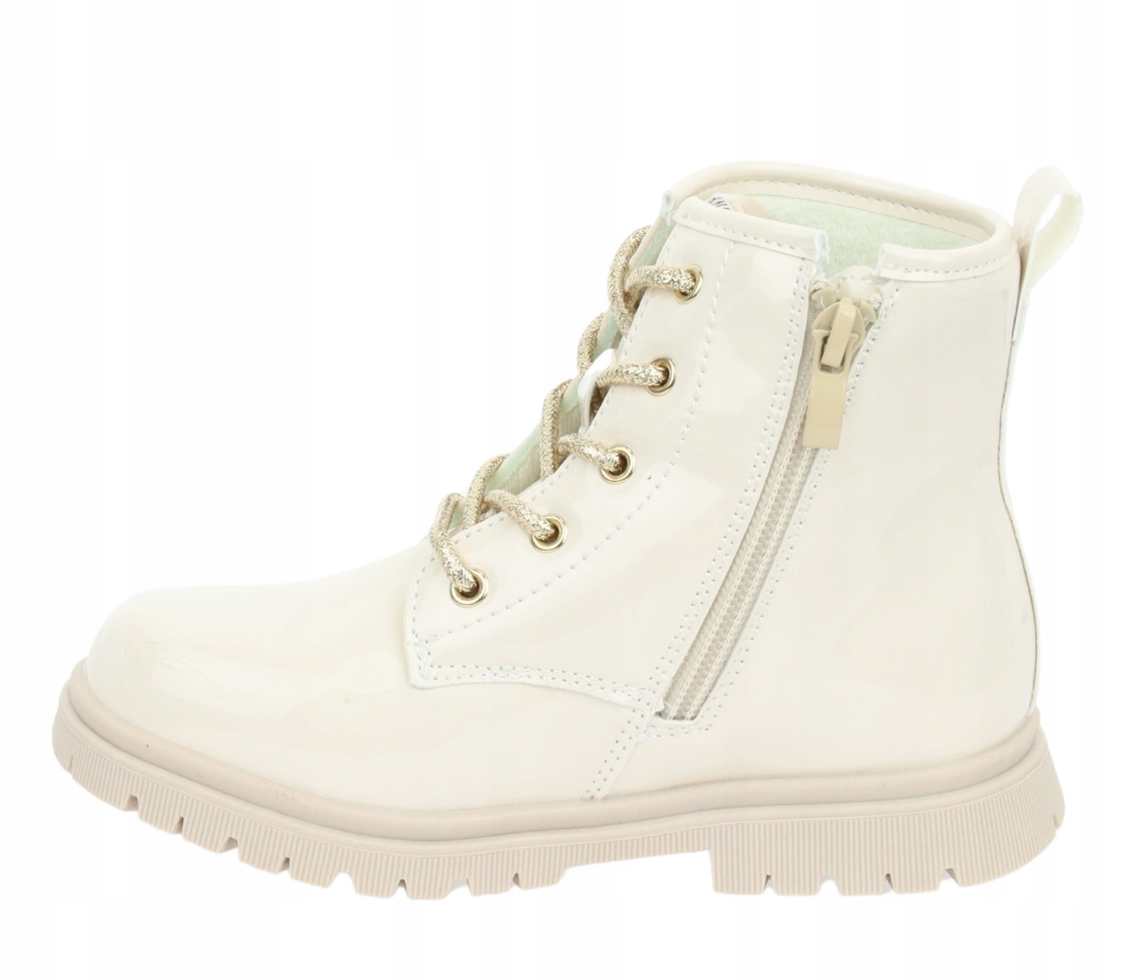 Бежеві лаковані осінні чоботи дитячі, утеплені елегантним ведмедиком