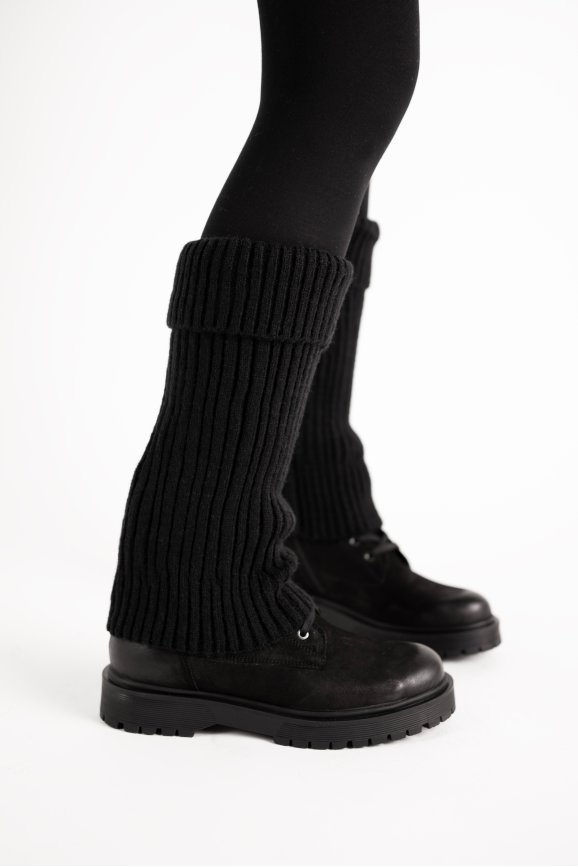 Довгі зимові гетри з ребристим плетінням і декоративним підворотом — практичний і модний аксесуар для холодних днів.