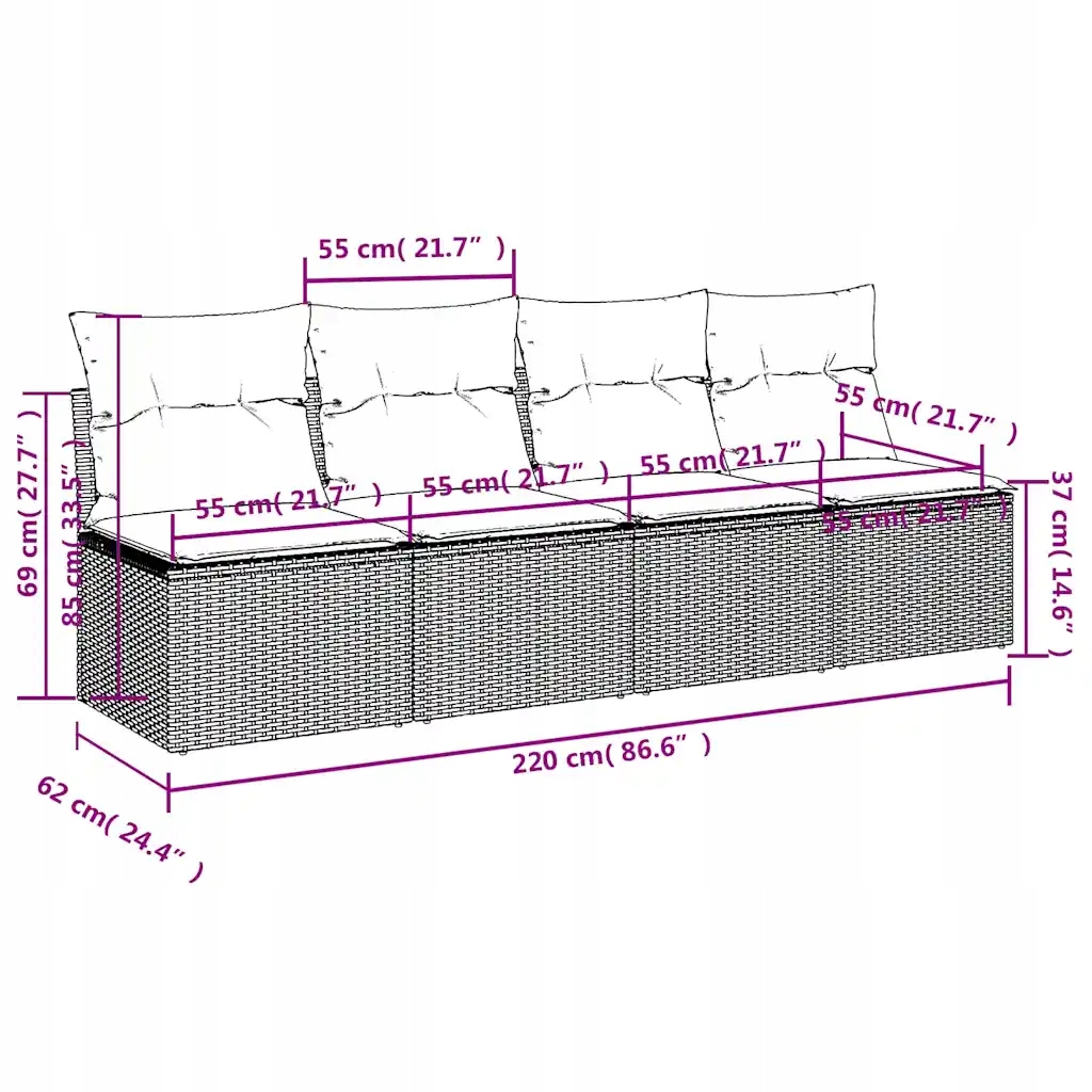 Бежевий 4-місний садовий диван з подушками, розміри 220 х 62 х 69 см