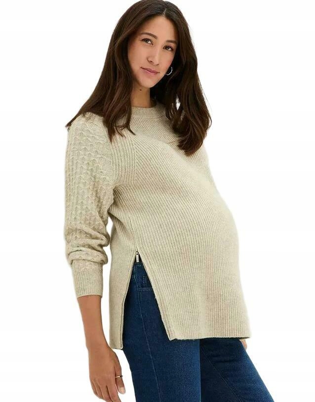 Бежевий светр для материнства з бічним відкриттям - ідеальна пропозиція для майбутніх матерів, які цінують комфорт та стиль. Виготовлений з м'якої еластичної тканини, вона адаптується до зростаючого живота. Бічні отвори забезпечують додатковий простір та комфорт, а делікатне плетіння та бежевий колір надають цілому елегантному природному вигляду.