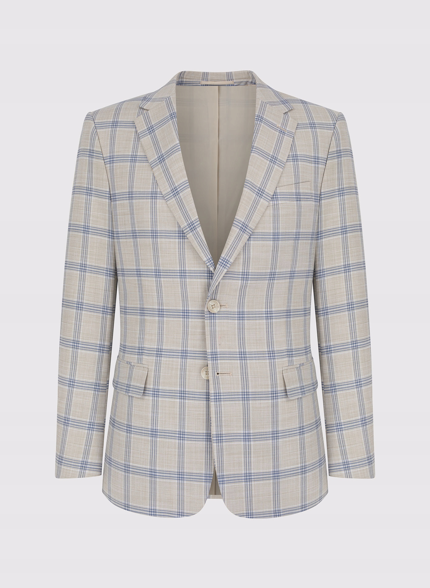Бежевий піджак у клітинку від Pako Lorente. Чоловічий піджак Slim Fit. Крій підкреслює достоїнства чоловічої фігури та оптично її стрункість. Піджак однобортний на два ґудзики. Всередині куртки підкладка бежевого кольору в тон і дві кишені, розташовані на рівні грудей. Куртка з двома розрізами ззаду, що підвищує комфорт при носінні. Разом із брюками P23SF-6G-006-E-S це створює стильний костюм.