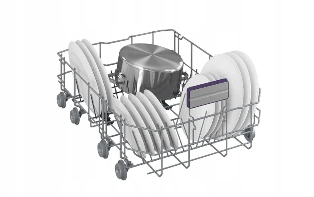 Посудомийна машина оснащена нижньою кошику, яка має підставки для тарілок, і верхній кошик з 2 поличками - на чашках. Особливість верхнього кошика - регульована висота. Використовуйте простір для найкращого!