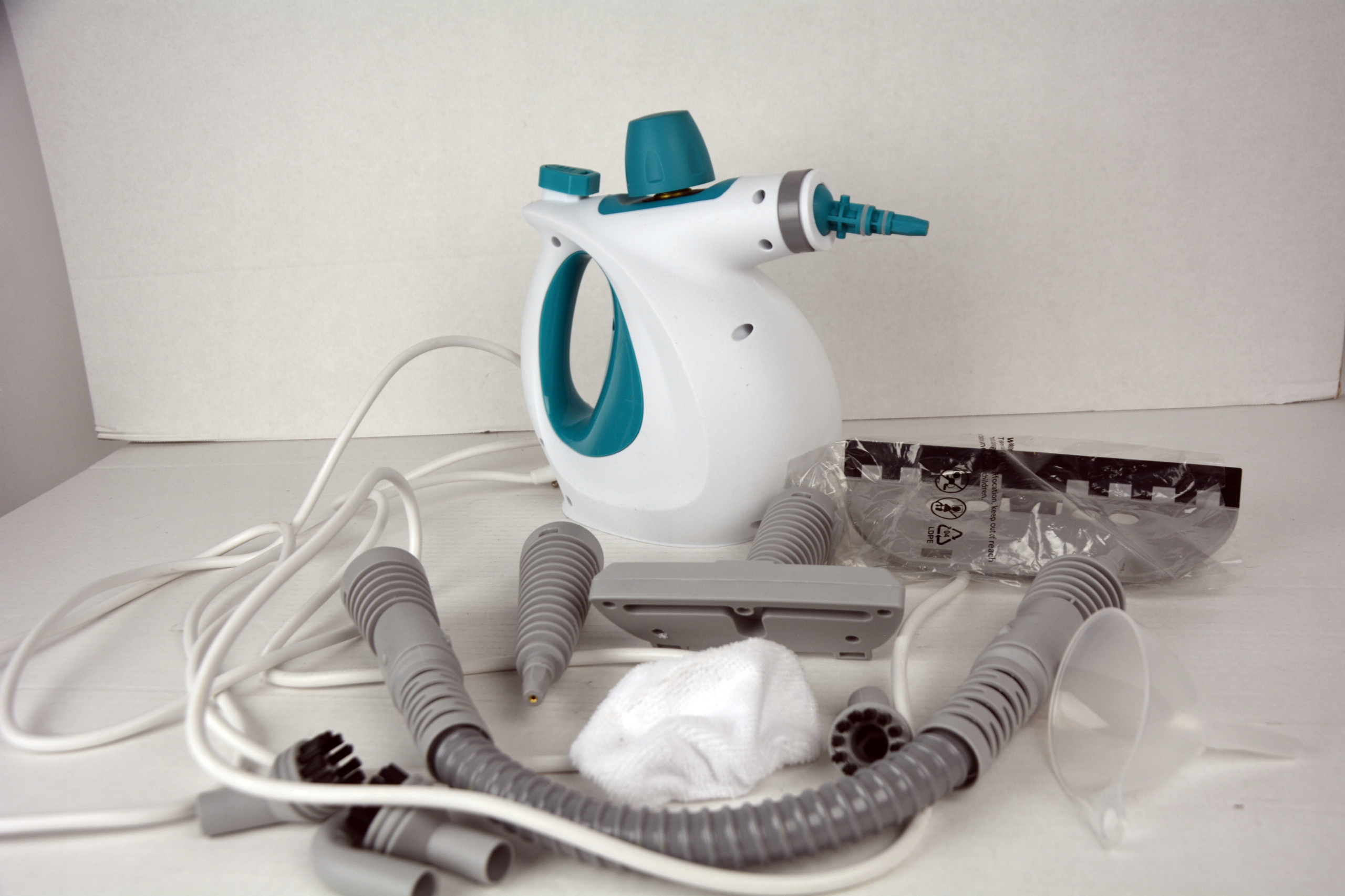 - без хімічних засобів, ніяких очищувальних засобів не потрібно, просто використовуйте воду для гігієнового синдрому. Воронка, гнучкий розширюючий шланг, три пластикові круглі щітки, міні -голова швабри та косова насадка.