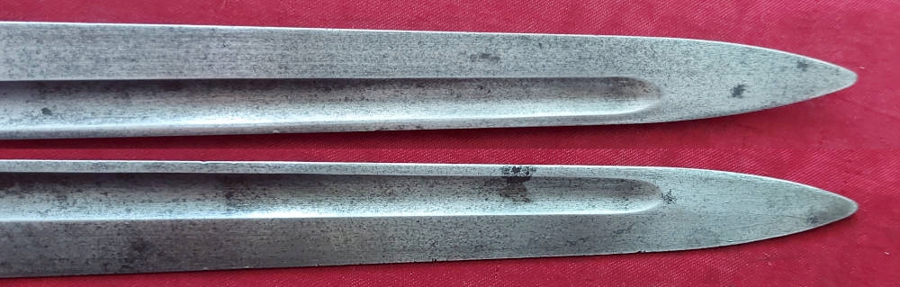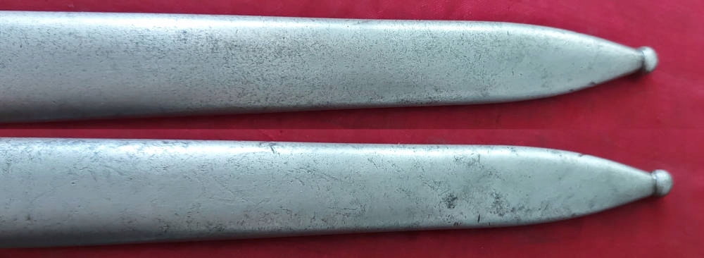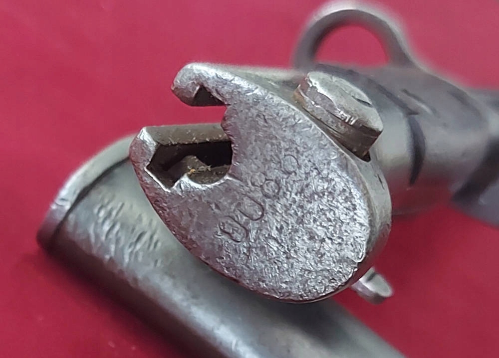 Копія, видна на фотографіях, дуже добре збережена. Лезо безкомплектовано і не торкнеться, покрите ніжною патиною. Обшивка ручки дерев’яна, оригінальна. Замок Bayonet функціональний. На голові число 0088 .