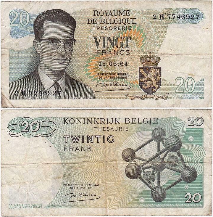Бельгія, 20 франків / Франк 1964 року вибір 138(1)