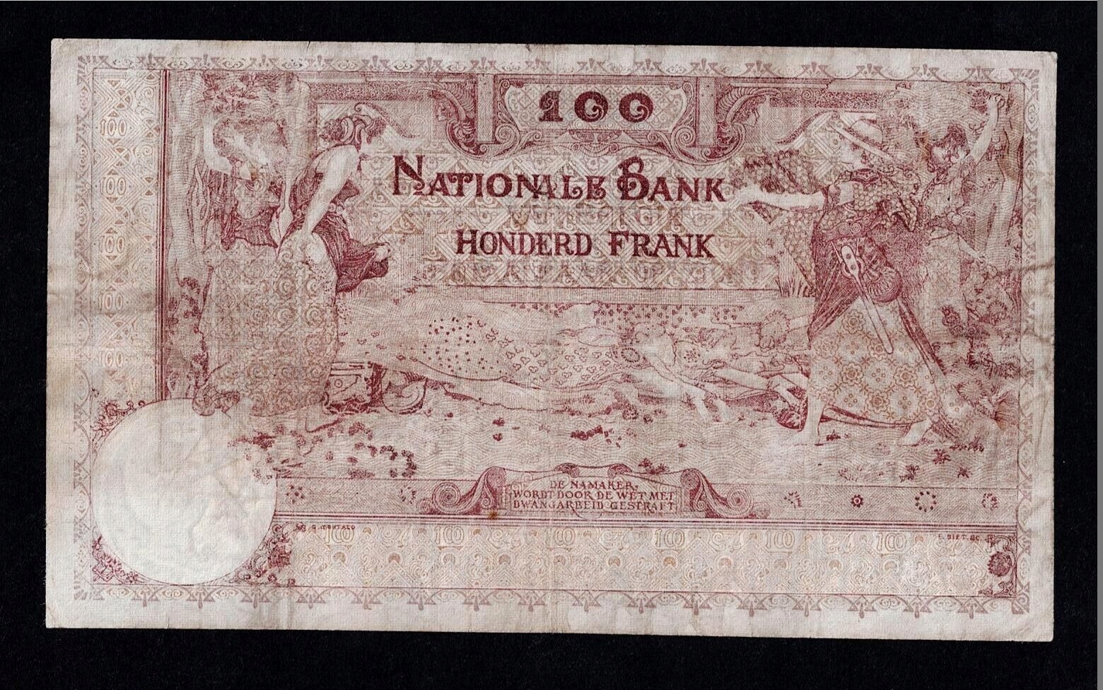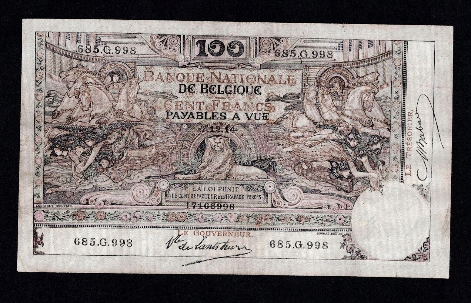 БЕЛЬГІЯ 100 ФРАНКІВ 1914 П-71а.9 стр.3+ ВЕЛИКИЙ РОЗМІР КУПЮРА ДУЖЕ РІДКІСНА!!!