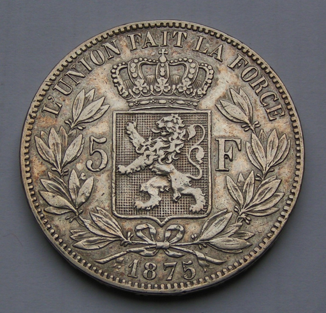 Бельгія 5 Fr Leopold II 1875 R -Ag