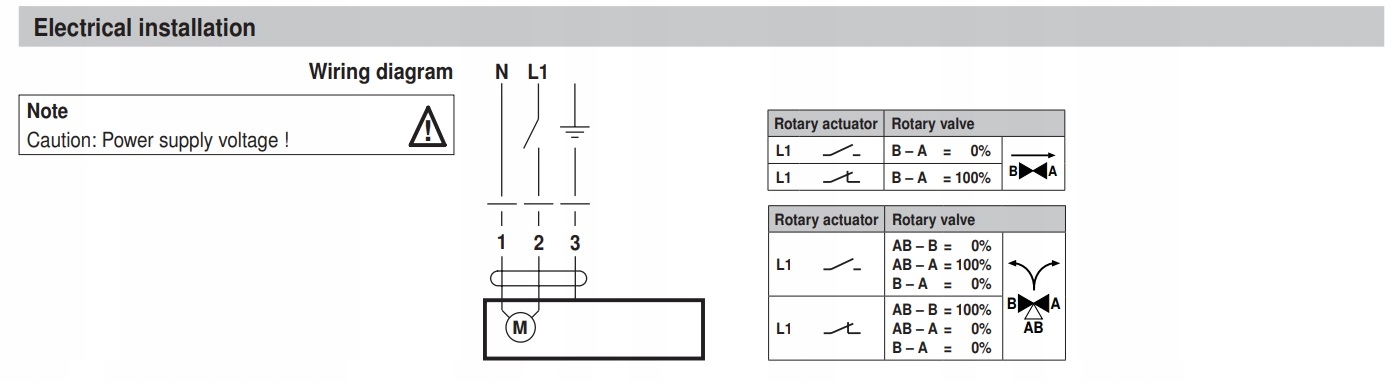Пристрій складається з клапана та приводу (можна замінити сам привід, який доступний на іншому нашому аукціоні). Накопичувач має важіль, який при нейтральному налаштуванні означає, що зовнішній вигляд напруги 230 В у циліндрі відкриває потік через клапан. Відсутність напруги викликає закриття завдяки побудованій весні. Клапан також можна переключити вручну за відсутності напруги 230 В. Важіль повинен бути переміщений у відкрите положення, коли з’являється напруга, клапан повертається в автоматичне положення.