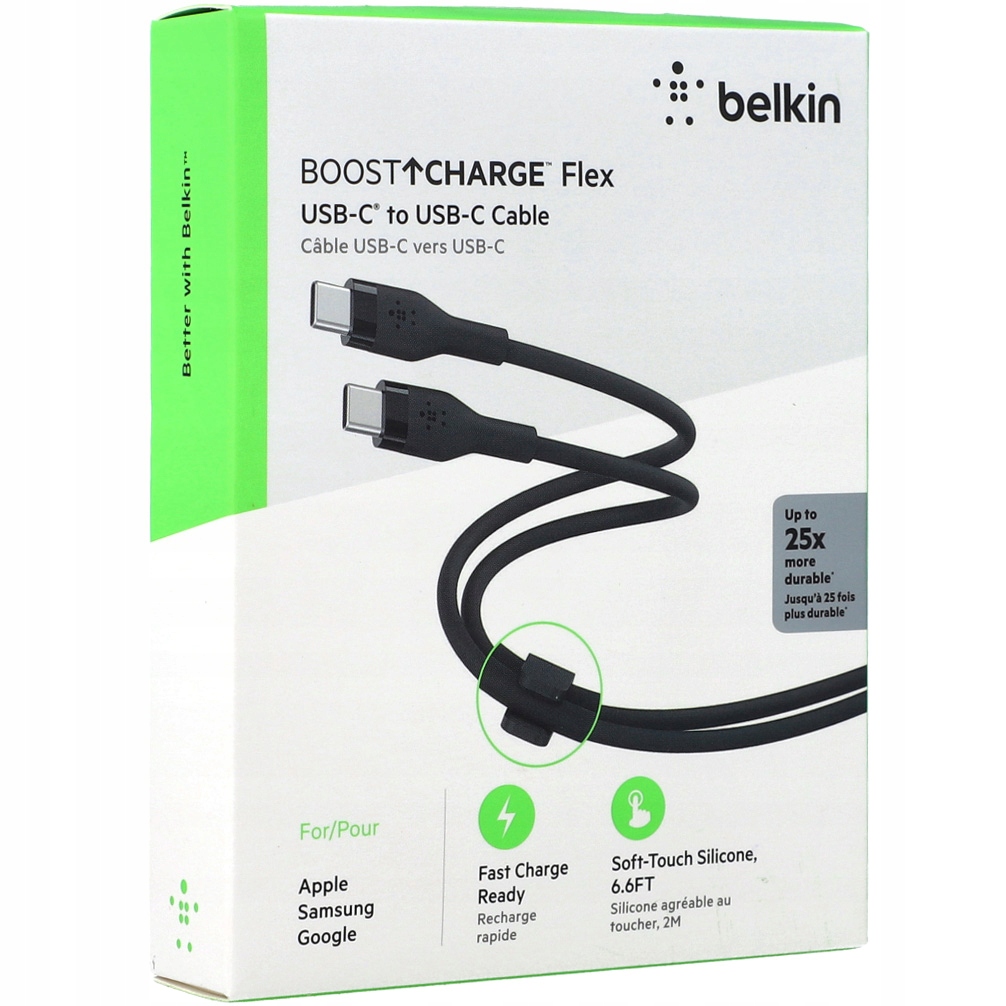 Силіконовий кабель Belkin Flex забезпечує гнучкість, м'якість і довговічність кабелю, роблячи його менш сприйнятливим до сплутування або згинання .
