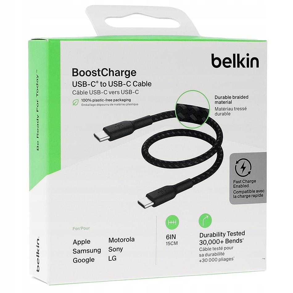 Belkin Kabel USB C na USB C 60W oplot, czarny 0,15m (CAB004BT0MBK)