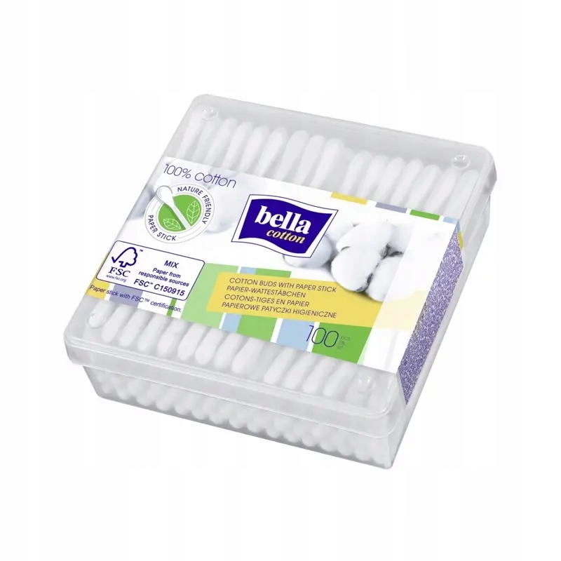 Ватні палички Bella Cotton з паперовою ніжкою є екологічною альтернативою традиційним паличкам. Вони покриті 100% бавовною - вони м'які і не викликають роздратування. Їх можна сміливо використовувати для чищення вушної раковини та точкового нанесення косметики. Виготовлений з безпечних, біорозкладних матеріалів.