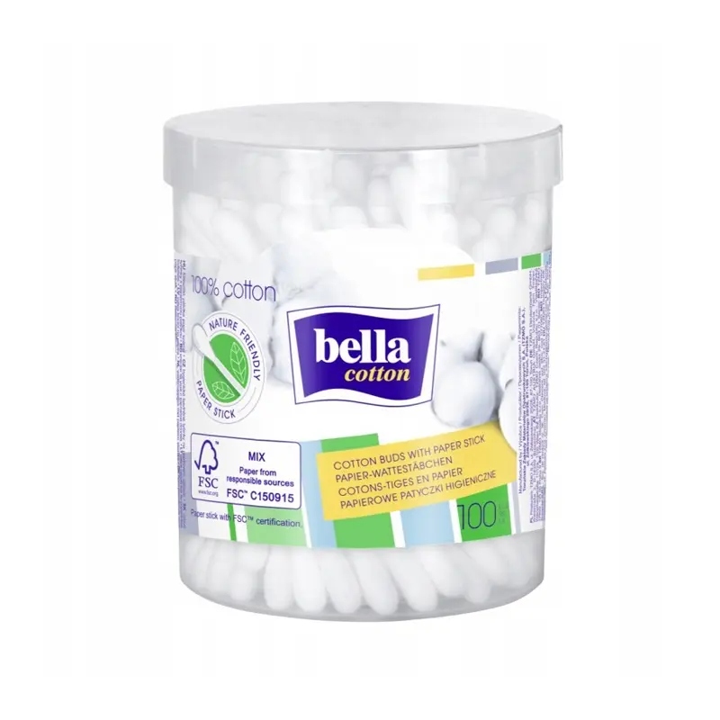 Ватні палички Bella Cotton з паперовою ніжкою є екологічною альтернативою традиційним паличкам. Вони покриті 100% бавовною - вони м'які і не викликають роздратування. Їх можна сміливо використовувати для чищення вушної раковини та точкового нанесення косметики. Виготовлений з безпечних, біорозкладних матеріалів.