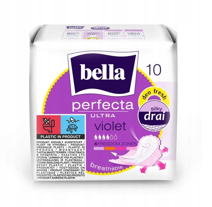 bella perfecta Ultra Fiolet - це надзвичайно тонкі санітарні прокладки, які забезпечують розсуд, комфорт та відчуття сухості протягом дня.