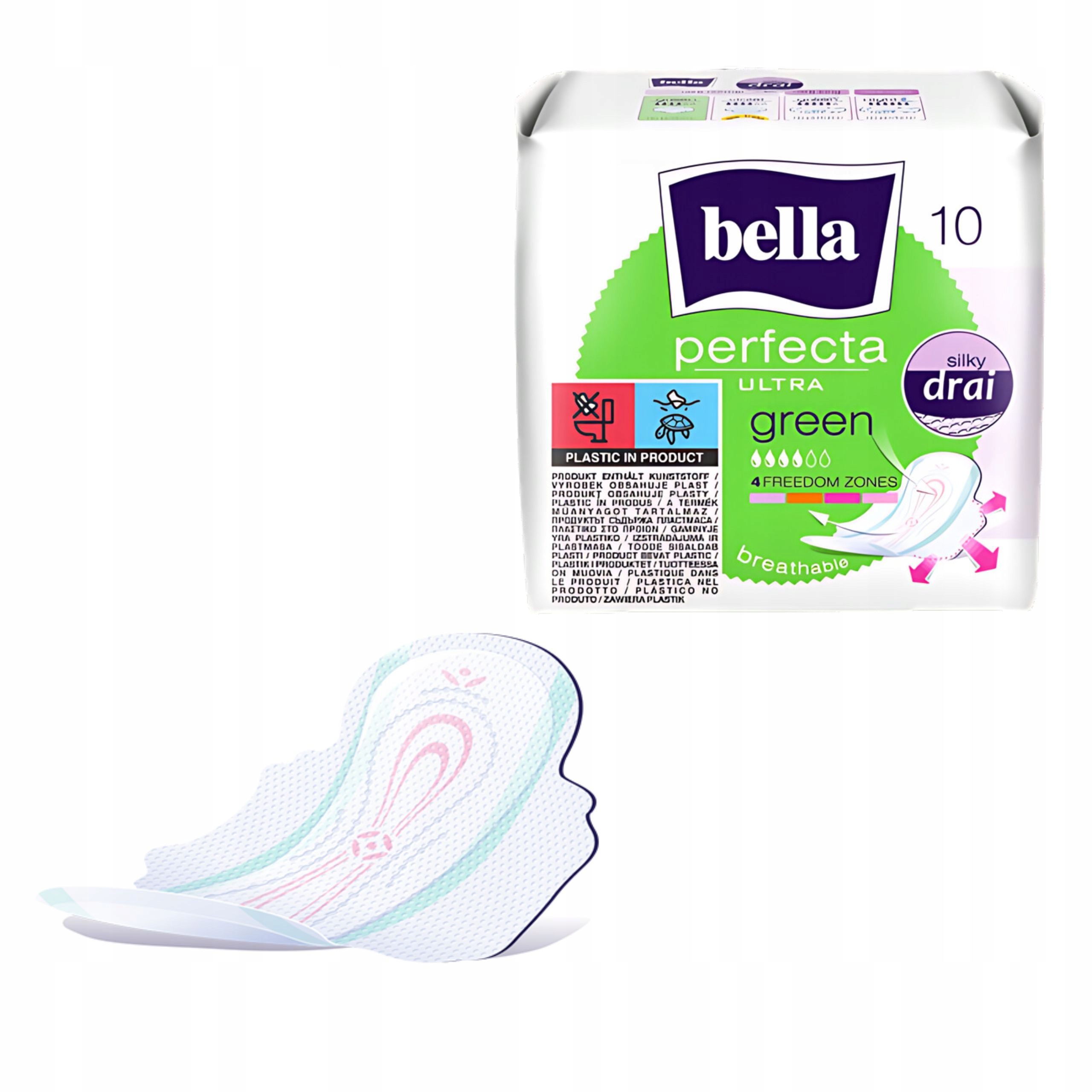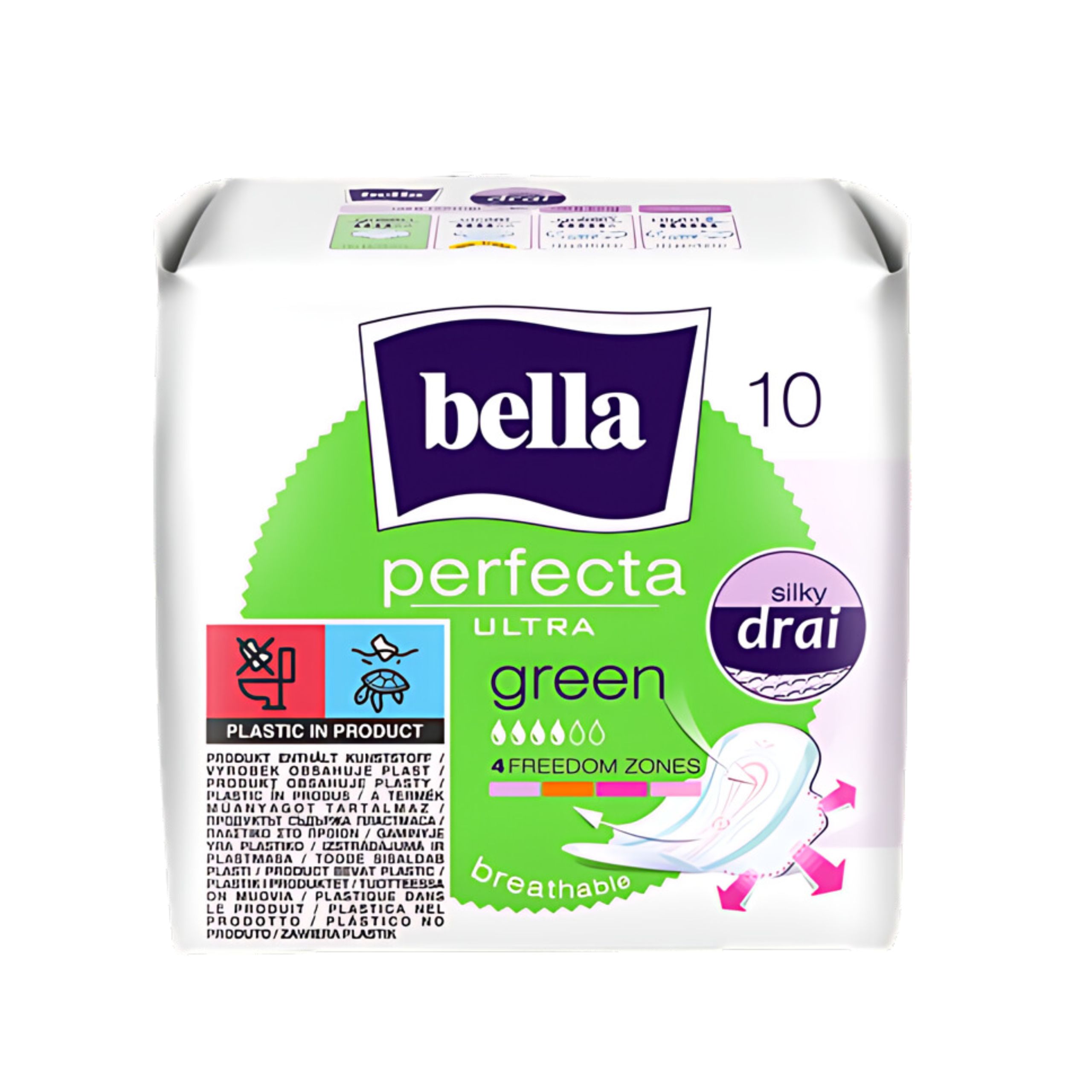 Гігієнічні прокладки Bella Perfecta Ultra Green характеризуються високою вбираючою здатністю завдяки інноваційній сітці Silky Drai із системою мікролійок, яка швидко вбирає вологу та утримує її всередині прокладки. Вони мають правильну форму, яка ідеально адаптується до анатомії тіла.