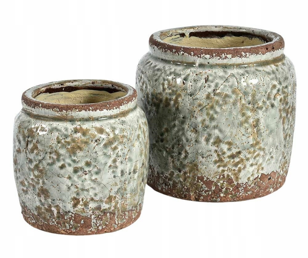 Квітковий горщик з кераміки, навмисно зістарений. Глазур красивого зеленого відтінку в поєднанні з коричневим. Поверхня з видимими тріщинами та делікатними поглибленнями.