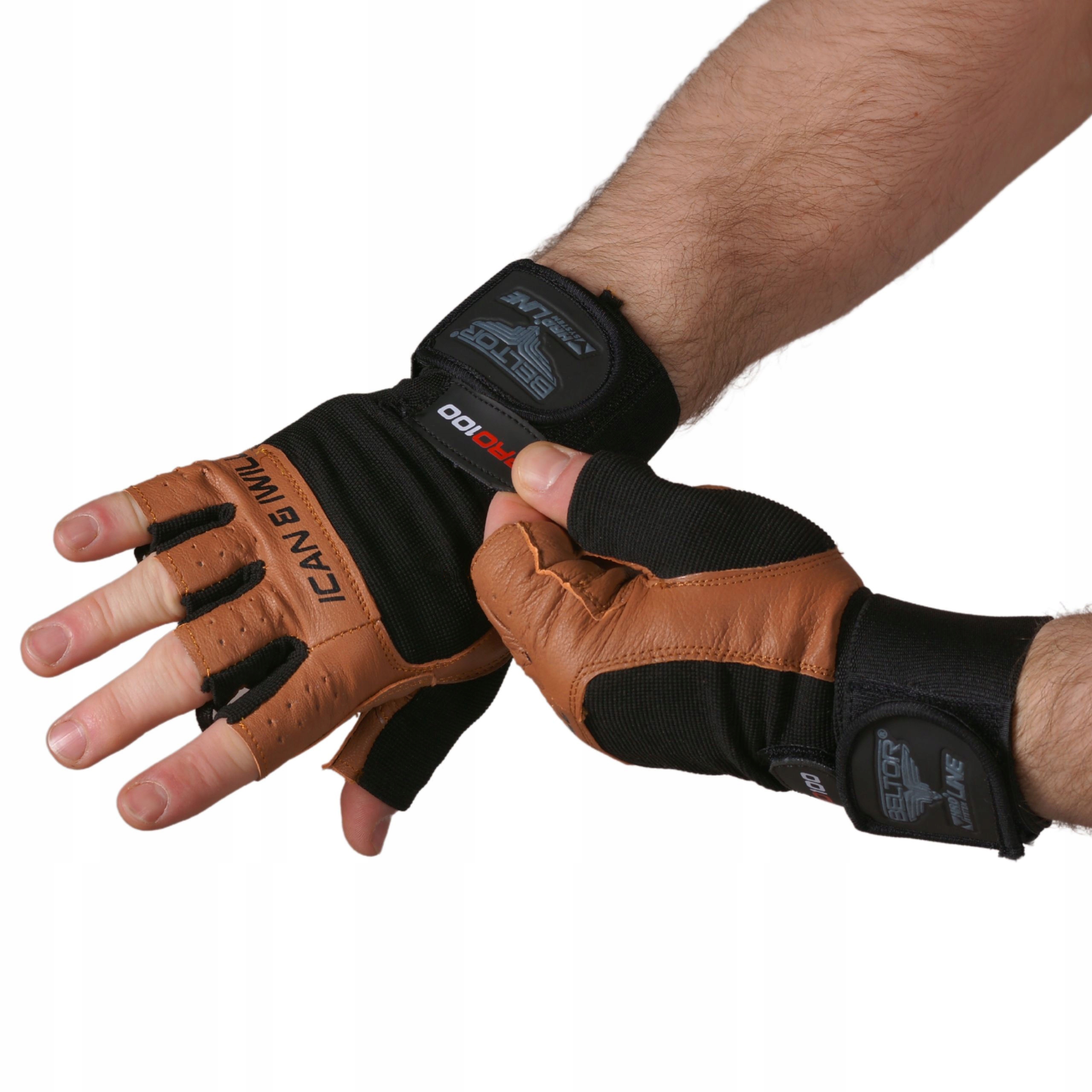 BELTOR ТРЕНУВАЛЬНІ РУКАВИЧКИ ДЛЯ СПОРТЗАЛІВ PRO 100 ШКІРЯНІ КОРИЧНЕВІ РОЗМІР S