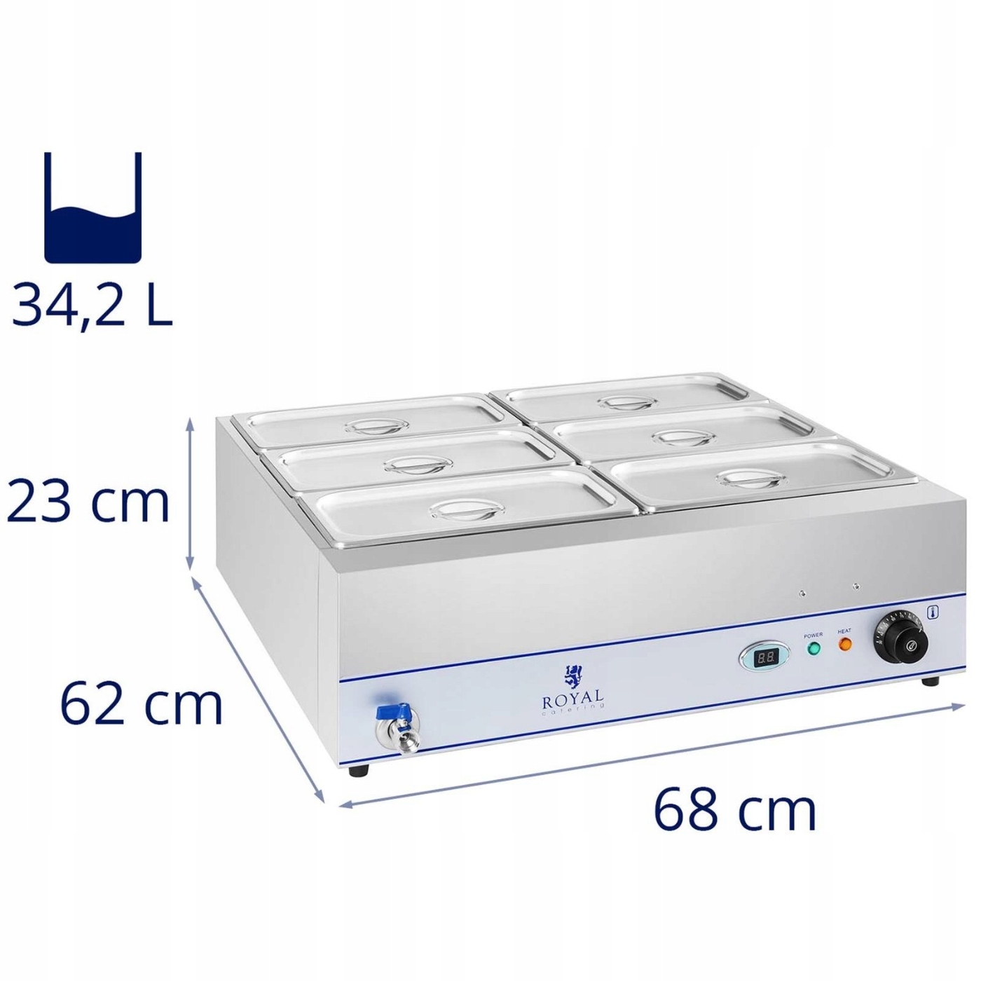 Bemar 6xGN1/3 Royal Catering RCBM-6W-2000 tap Product: - Total capacity: 34.2 l, enabling simultaneous heating of several dishes in containers GN 1/3