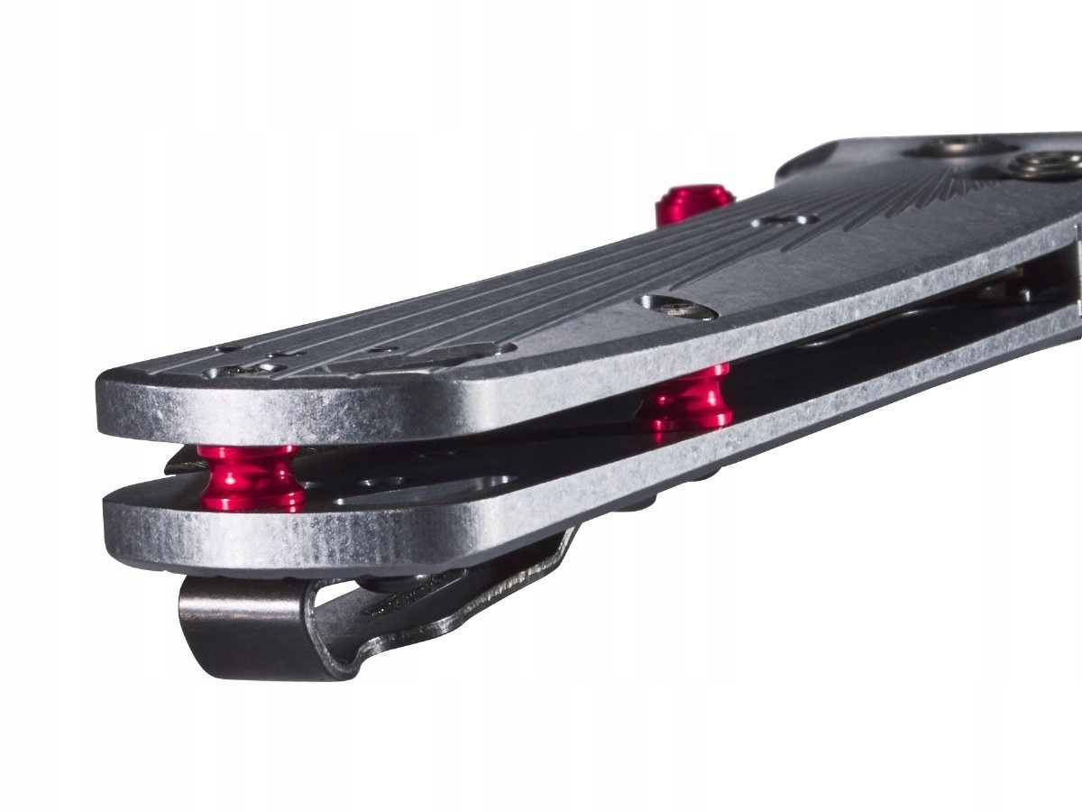 Завдяки використанню двосторонньої шпильки (з анодованого алюмінію) лезо зручно розгортати однією рукою, що забезпечує комфортну роботу з ножем для правшів і лівшів.