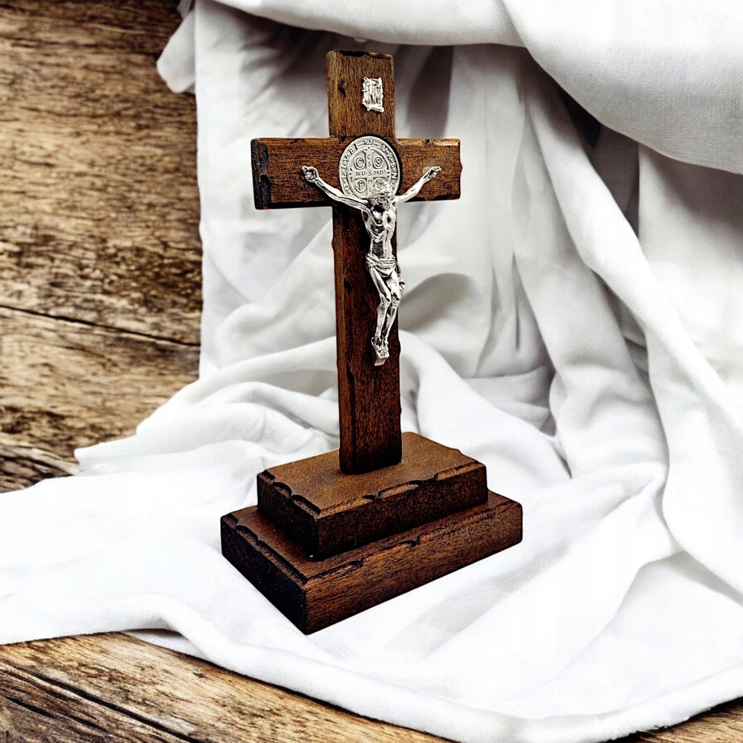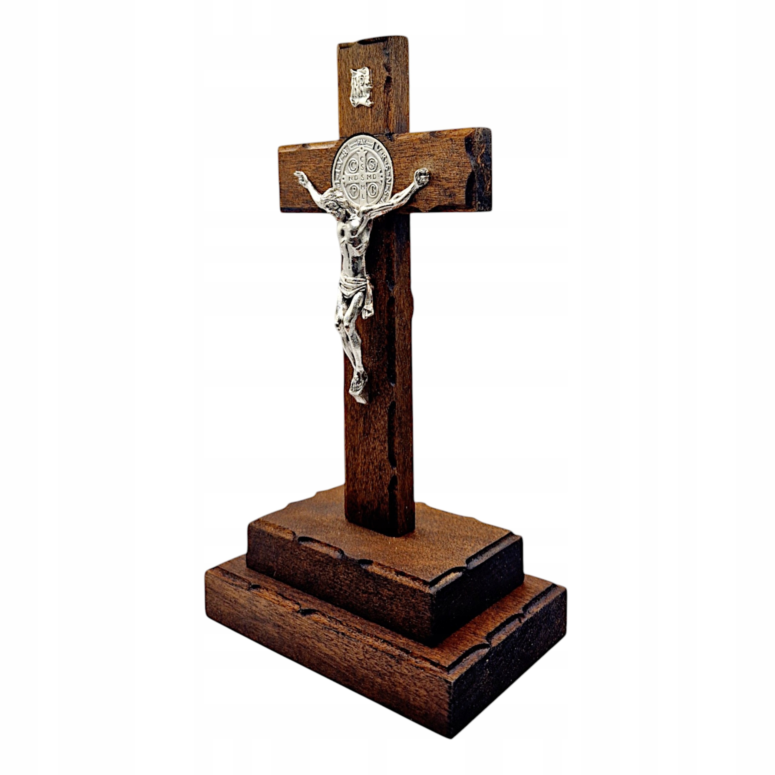 Бенедиктинський хрест стоячи темною деревиною 22 см, приміщення для зберігання в основі
