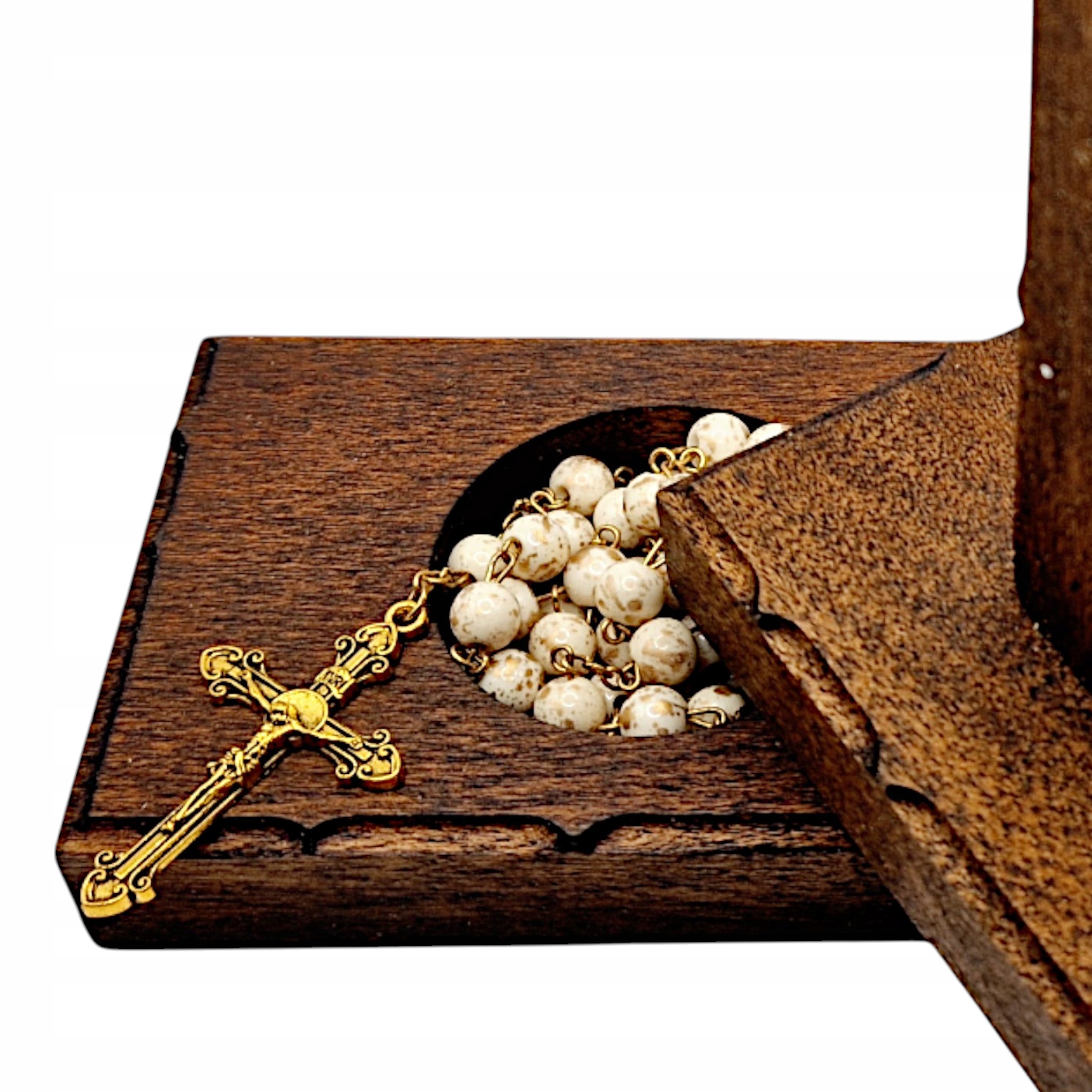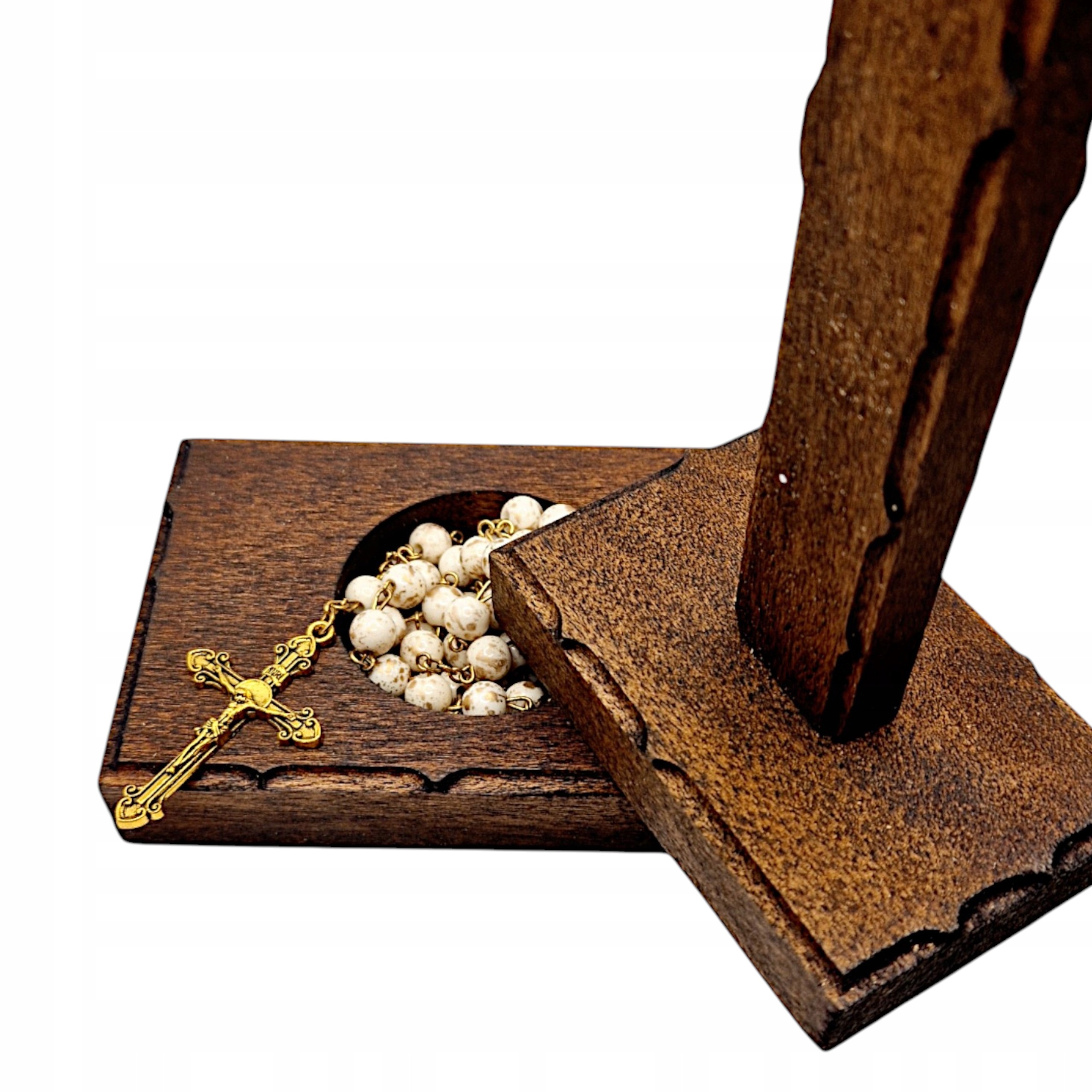 ⭐ унікальний , виготовлений з деревини - це комбінація традицій та функцій. Його глибокий темний відтінок бука підкреслює природне зерно деревини, надаючи йому вишуканий вигляд. Металева пристрасть Встановлення на хресті додає виразності та духовного характеру.