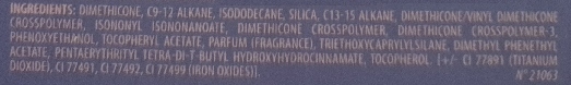 Вона має легку формулу, яка миттєво усуває видимість дрібних недоліків, таких як пори та дрібні зморшки. Залишає шкіру гладкою та зволоженою, завдяки вмісту похідної вітаміну Е, з шовковистим відтінком.