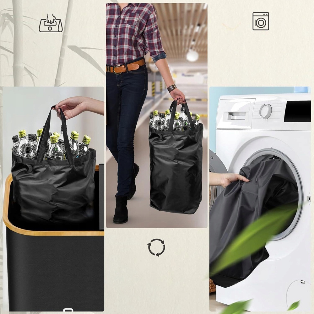 - ✔️- Велика ємність 140 літрів, яка вміщує близько 100 пляшок, ретельно обладнана 2 відділеннями, які полегшують сортування та зберігання різних типів пляшок.