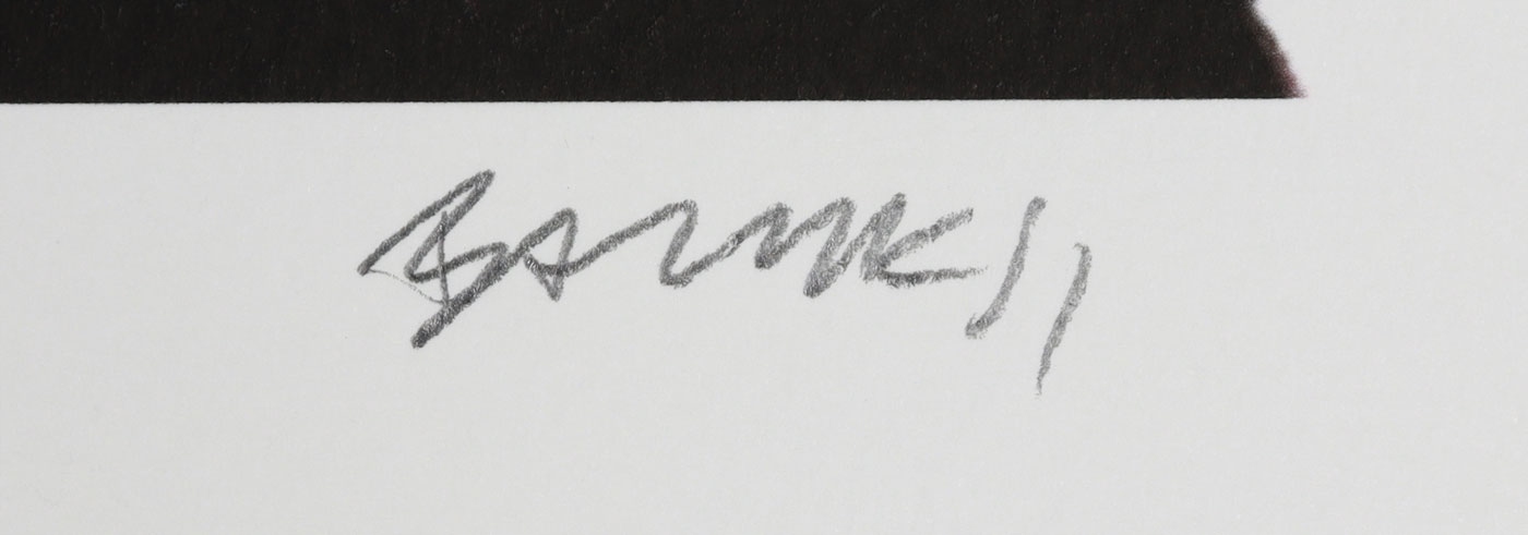 Автор: Бенксі (справжнє ім’я згідно з газетою «The Guardian»: Роберт Бенкс, згідно з «The Mail on Sunday»: Робін Ганнінгем, згідно з іншими джерелами: Робін Бенксі, народився в 1974 році в Йейті) - британський вуличний художник. Його роботи з’являються на вулицях Лондона та інших куточків світу. Бенксі використовує різні техніки, щоб передати свої меседжі, найчастіше гумористичні чи політичні. Його оригінальна форма вуличного мистецтва, що поєднує графіті та характерну техніку трафарету, а також сміливе й часто дуже ризиковане розміщення робіт, здобула визнання художників і була помічена ЗМІ.