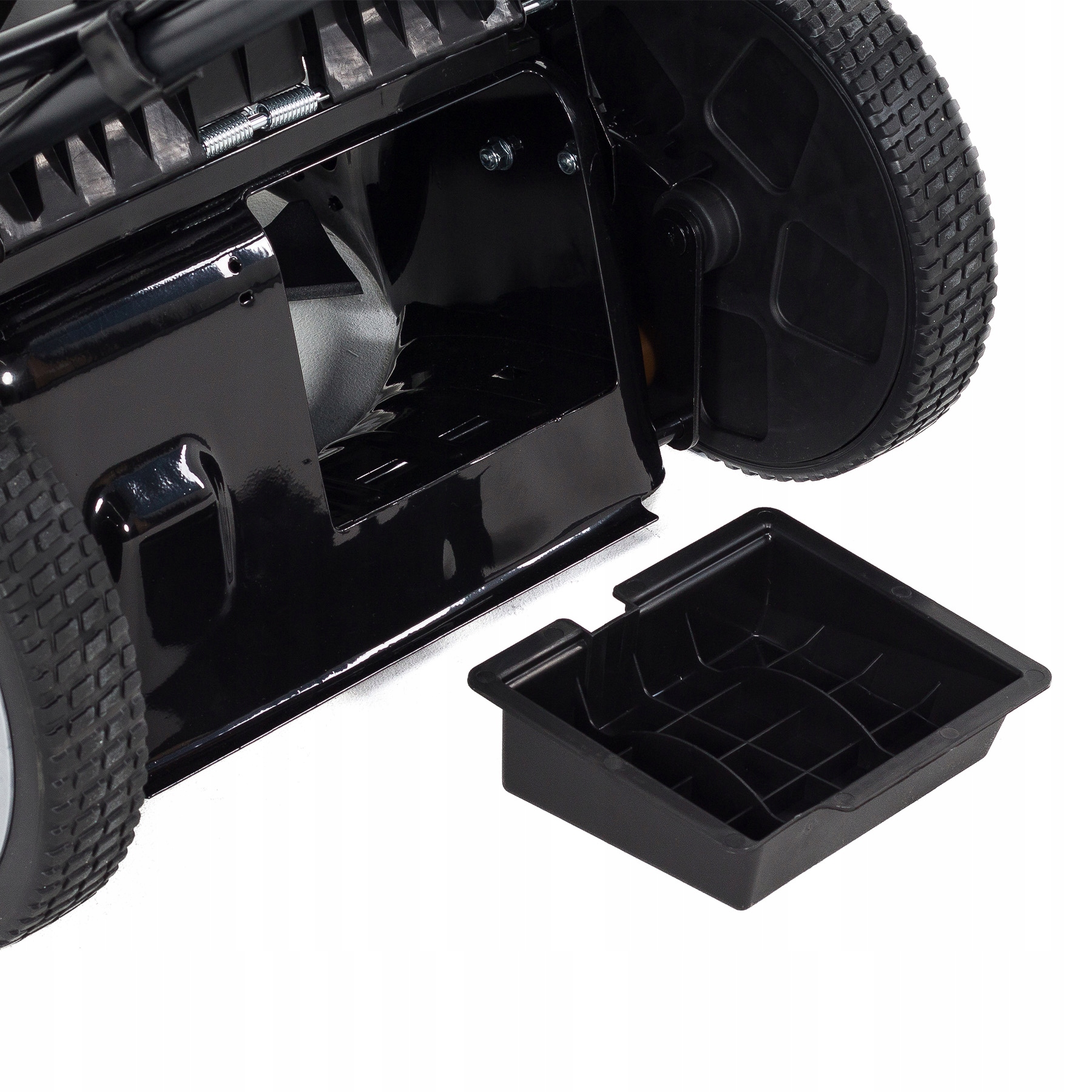 Великі задні колеса з підшипниками діаметром 25 см зменшують опір коченню та полегшують керування косаркою. Діаметр переднього колеса 18 см.