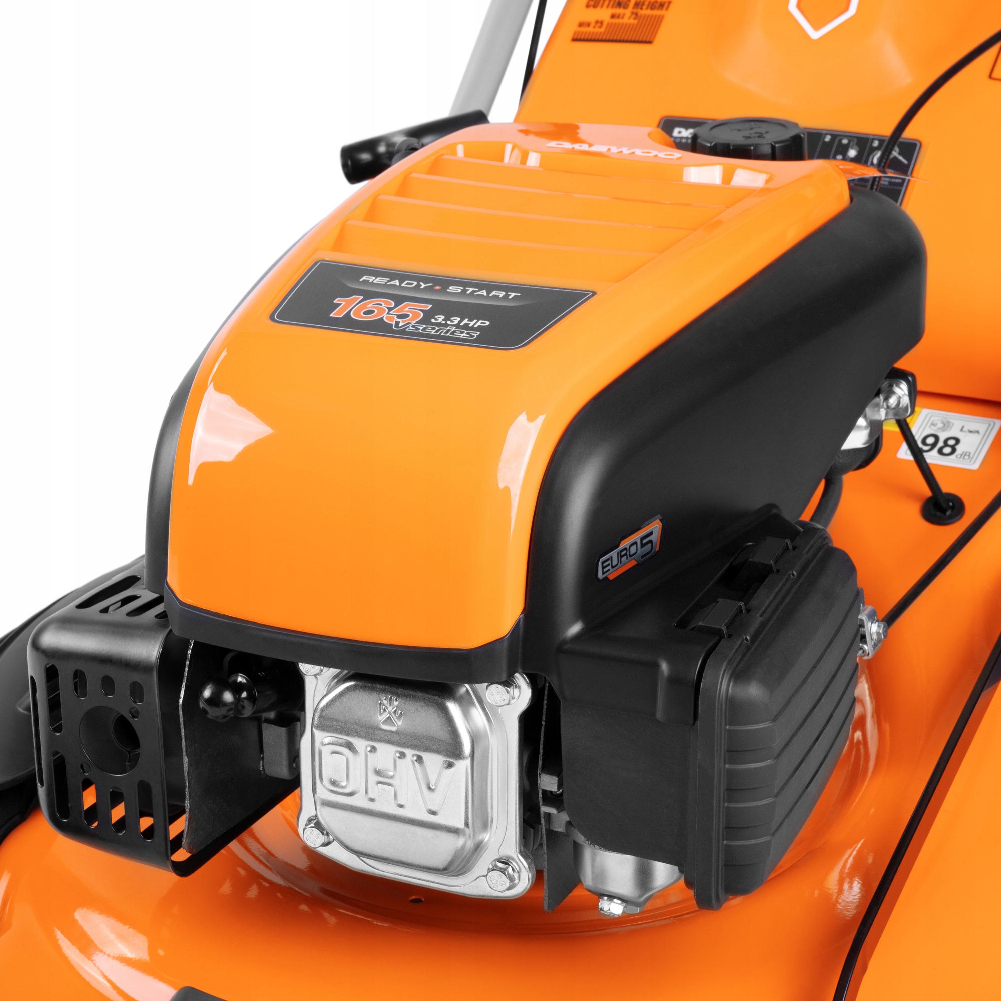 Косарка DLM 50SR оснащена ефективним двигуном внутрішнього згоряння потужністю 3,3 к. с., завдяки якому вона справляється з густою та мокрою травою та легко долає будь-які нерівності місцевості.