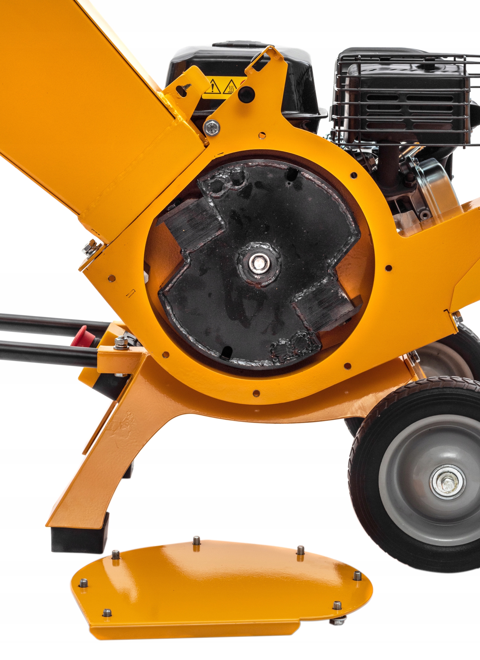 - кут викиду можна легко відкоригувати за допомогою регульованої заслінки та краще спрямувати потік деревної тріски до прикріпленого колеса, візка чи іншого контейнера