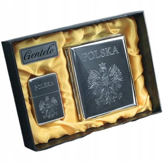 Набір, що складається з бензинової запальнички та портсигара. Упакована в елегантну подарункову коробку з начинкою.
