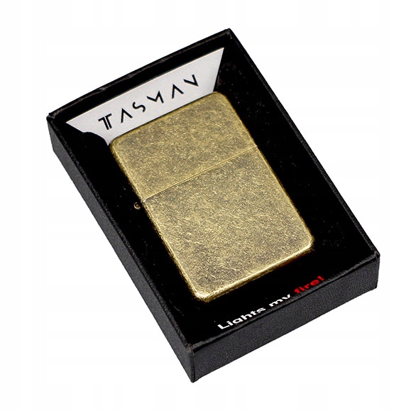 ЗАПАЛЬНИЧКА БЕНЗИНОВА TASMAN, МЕТАЛЕВІ В КОРОБЦІ - АНТИЧНА ЛАТУНЬ ЛАТУНЬ