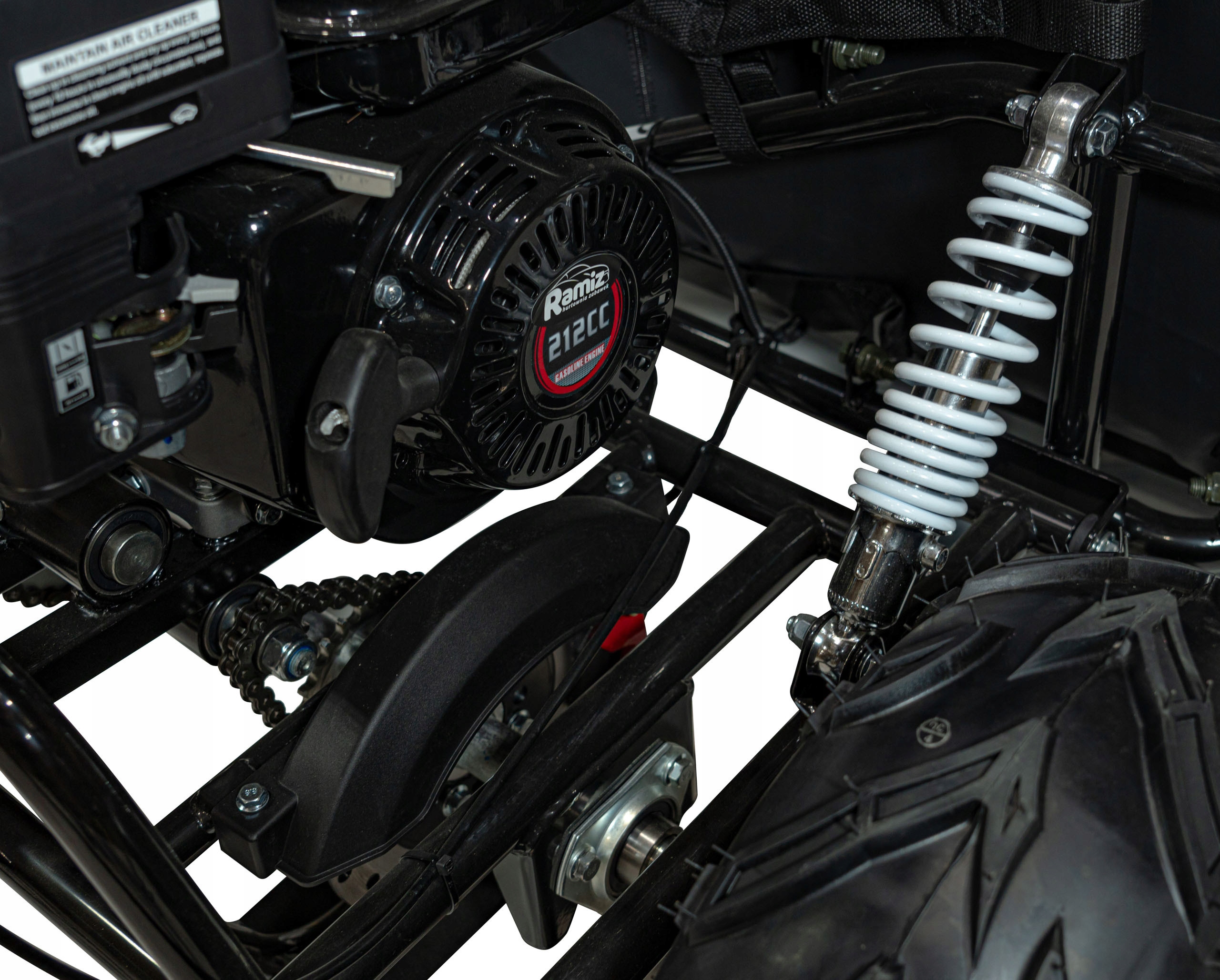 Автомобіль має одноциліндровий чотиритактний двигун, який забезпечує потужність і динаміку і дає дитині повну свободу на дорозі. Для забезпечення комфорту та стабільності їзди квадроцикл оснащений надувними шинами з товстим протектором, які амортизують удари та забезпечують впевненість на різних поверхнях. Амортизатори також забезпечують підтримку, забезпечуючи плавну та комфортну їзду. Дискові гальмагарантують швидкий і ефективний контроль швидкості, забезпечуючи безпечну зупинку в будь-якій ситуації. Міцна рамапокрита порошковою фарбою, а м'яке сидіння з міцного матеріалу забезпечить зручність і комфорт під час довгих годин гри.
