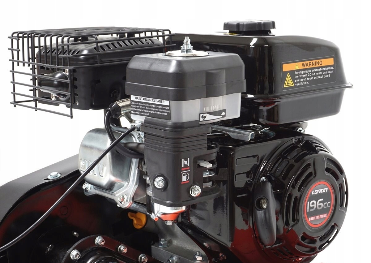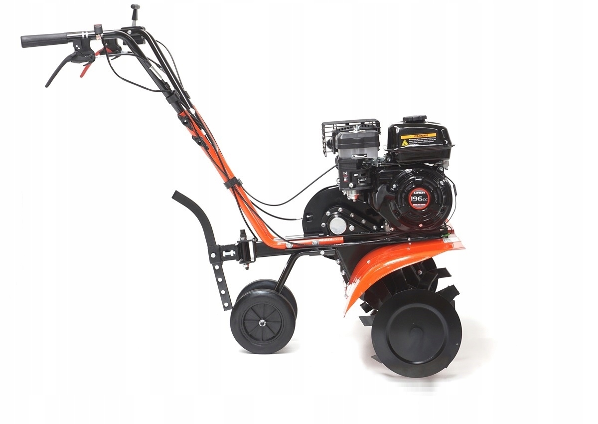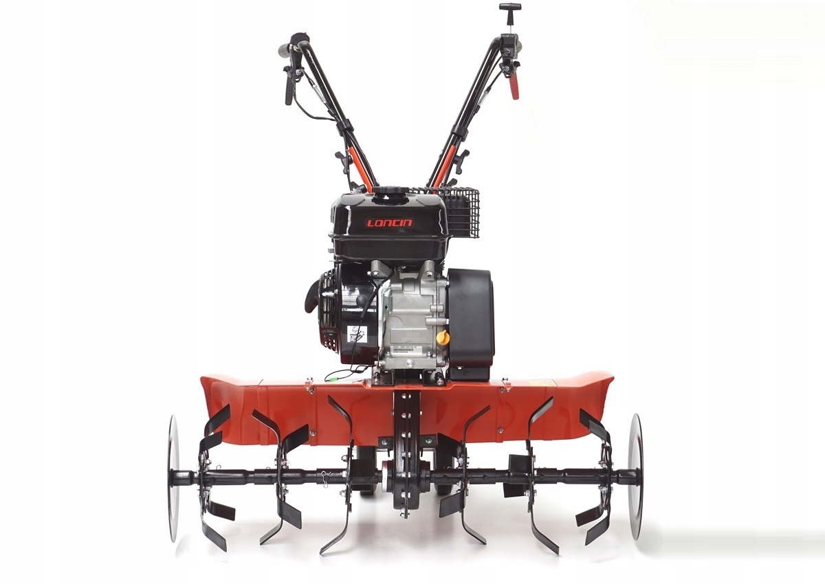 Міцний, масивний бензиновий мотоблок, що працює на фірмовому двигуні LONCIN з об’ємом до 196 см3. Машина має суцільні ротори з максимальною робочою шириною до 90 см - можливість демонтажу двох пар робочих зірок. Набір аксесуарів входить