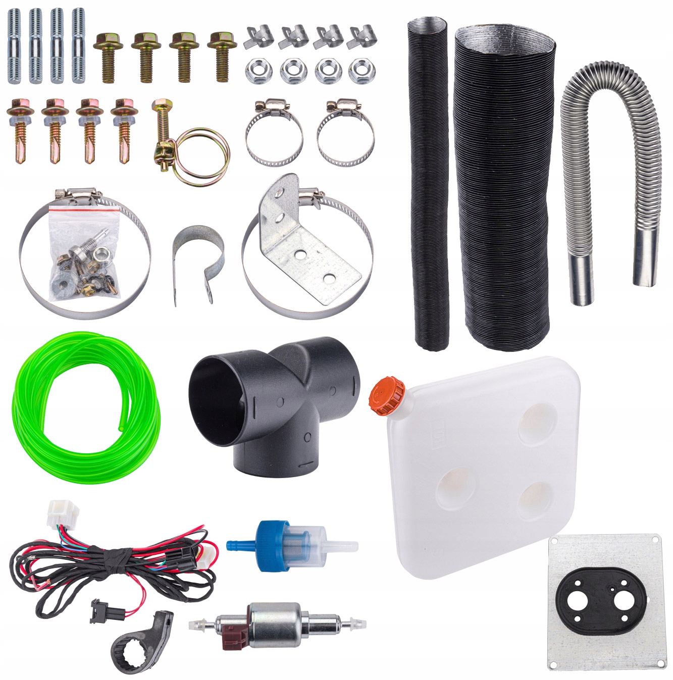 В набір входить набір гвинтів і хомутів для кріплення труб і самого пристрою в приміщенні, яке планується опалювати.