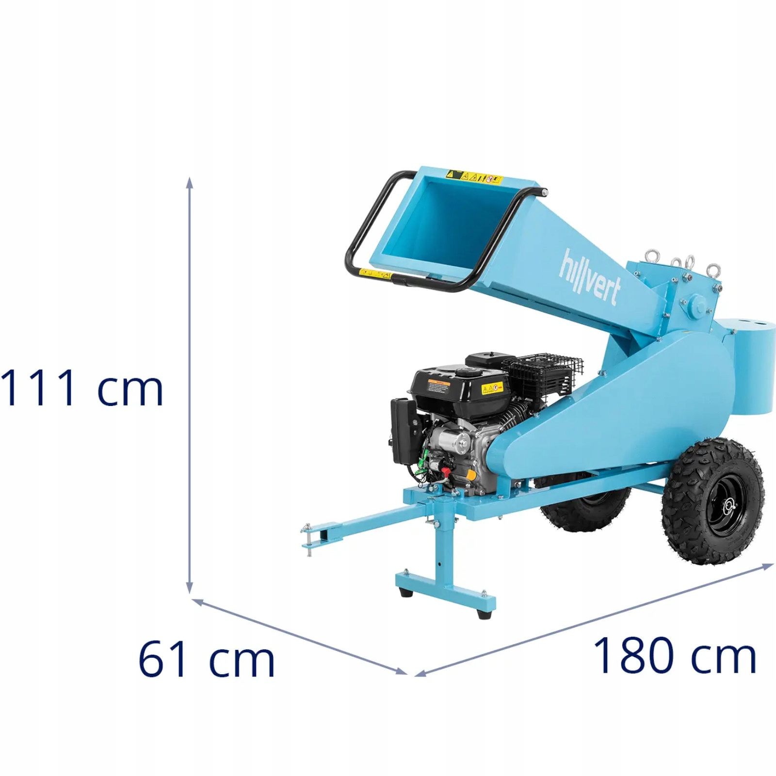 Подрібнювач горіння Hillvert дозволяє обробляти зрізані гілки в саду або на ділянці. Розрізає їх на шматки до 22 см завдовжки. Апарат оснащений вузлом точного різання з чотирма валами та потужним 4-тактним двигуном OVH об’ємом 212 м³. Паливний бак об'ємом 3,6 л гарантує тривалий час роботи. Двигун подрібнювача має потужність 7 к. с., що дозволить безпечно ділити гілки діаметром 7 см. Гілки подаються в пристрій через горизонтальний завантажувальний бункер, який подає деревину до різального агрегату. Отримані шматки довжиною до 20 см зручно зберігати або використовувати як паливо. Подрібнювач можна легко транспортувати безпосередньо до місця використання за допомогою буксирувального гака та двох великих гумових коліс. Міцна основа утримує машину для безпечної та стабільної роботи.
