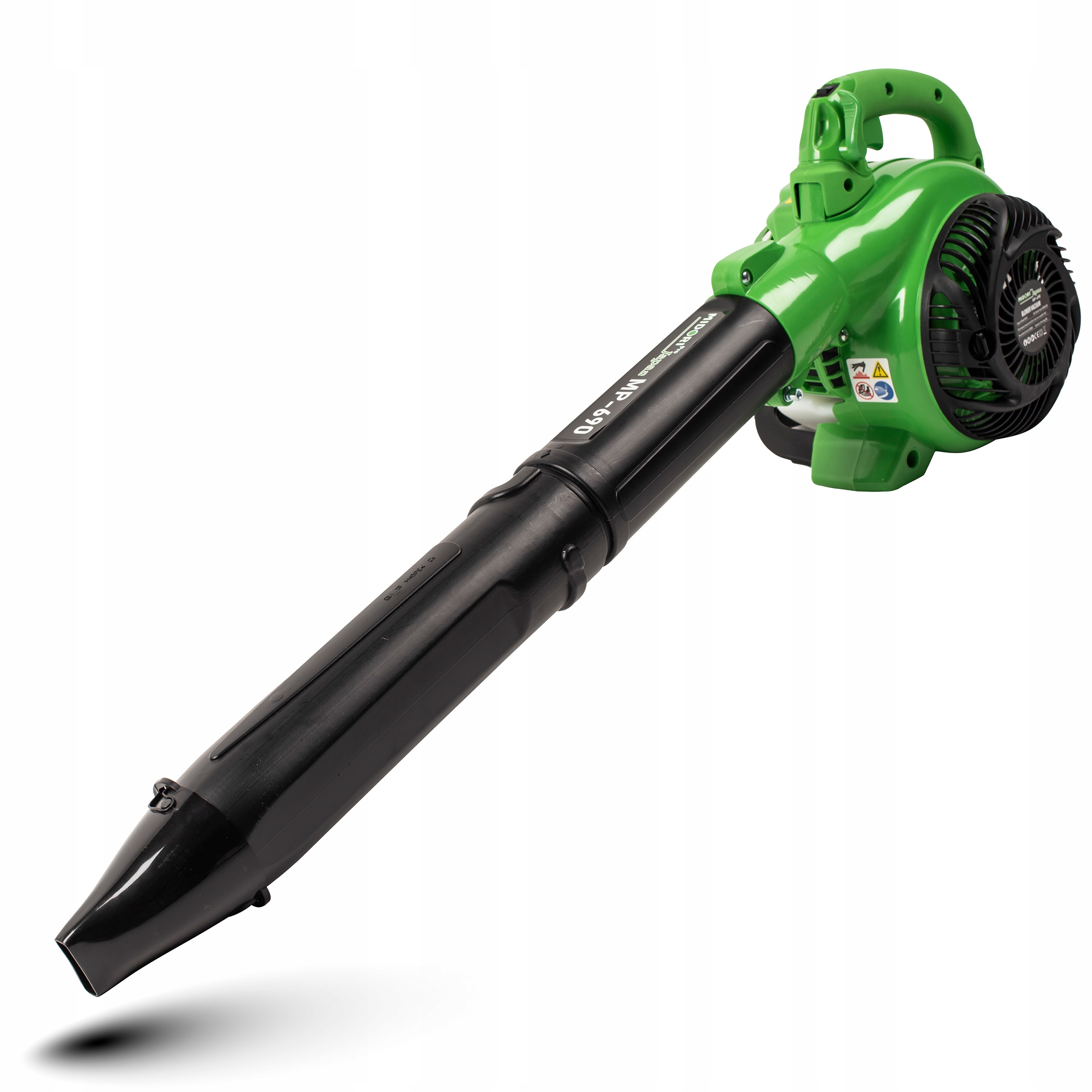 Повітродувка оснащена спеціально розробленою довгою трубою зі спеціальним випускним отвором, завдяки чому повітряний потік є великим і дозволяє швидко та комфортно видаляти бруд із непотрібних місць, забезпечує ефективну роботу з прибирання в саду, на подвір’ї та інших місцях.