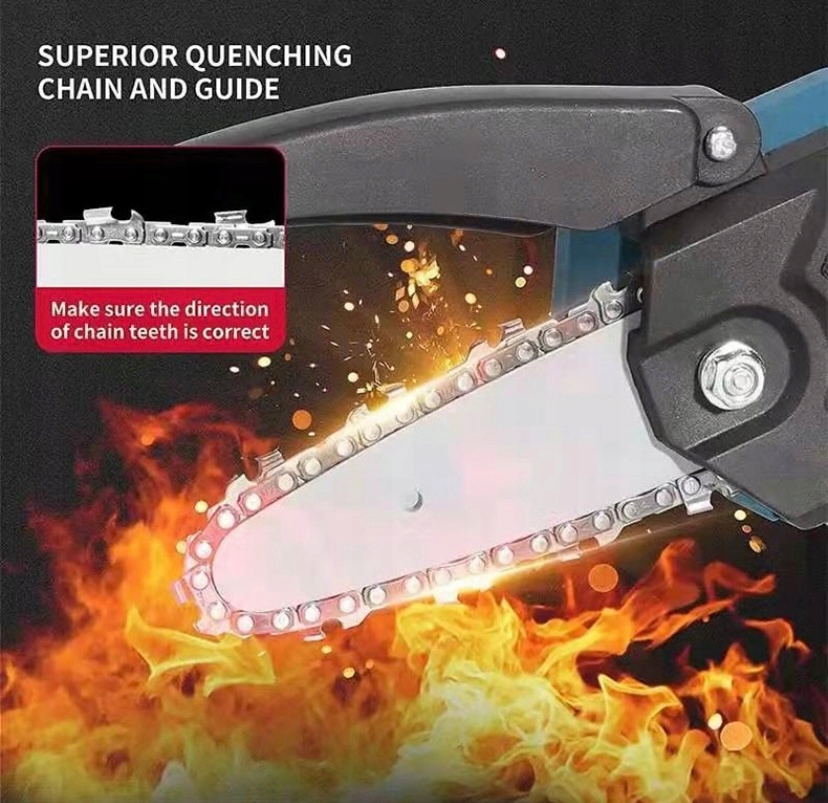 Ручна ланцюгова пила має протиковзку ручку, ергономічний дизайн і проста в експлуатації. Важить лише 0,7 кг (без батареї), жінкам легко керувати та використовувати, і не отримає втомився після довгих годин роботи. Міні-бензопила 6 дюймів більш зручна для зовнішніх робіт. Він більш портативний, ніж дротова бензопила, швидший, ніж шабельна пилка, і легший, ніж газова пилка.