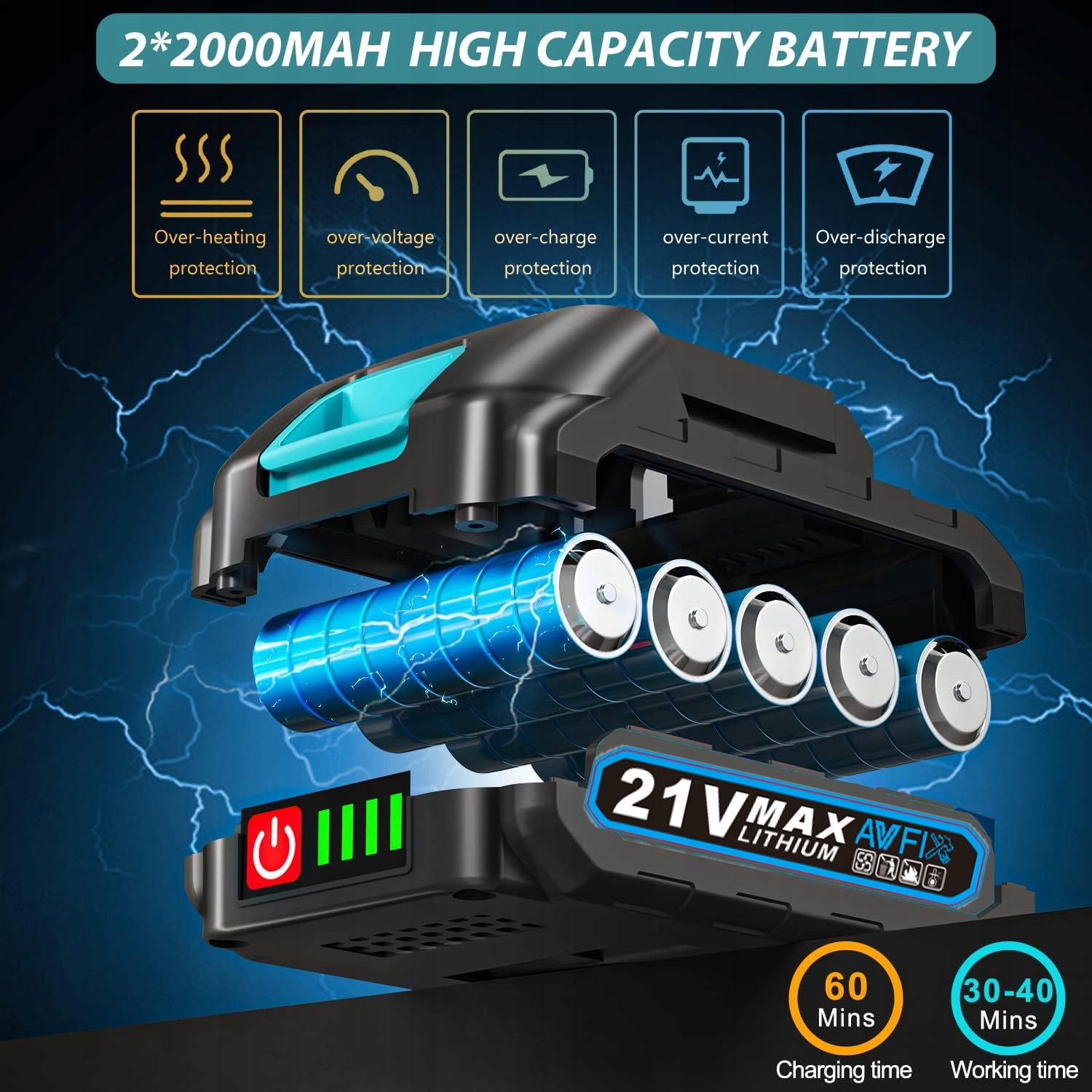 6-дюймова суперміні-акумуляторна бензопила Він оснащений потужним двигуном потужністю 1200 Вт і ланцюгом з марганцевої сталі, що дозволяє ефективно і легко різати колоди діаметром 6 дюймів всього за 8 секунд. Використання сокири, щоб розрізати колоду діаметром 6 дюймів, займає близько 300 секунд, що є неефективним і виснажливим!