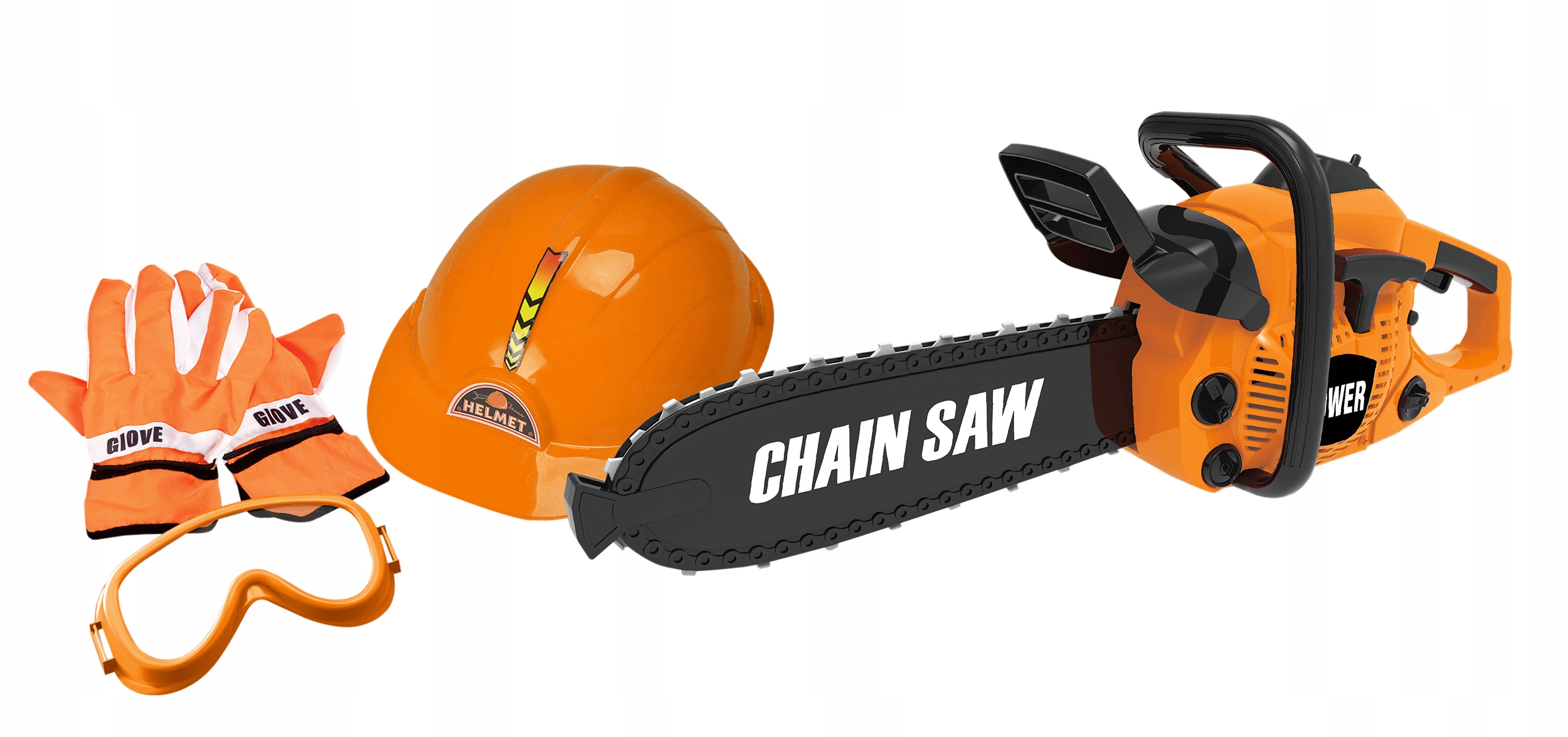 ⭕Коли ми потягнемо ручку з лівого боку, ми почуємо звук запуску справжньої газової пилки, а коли ми натиснемо на курок, ланцюг, встановлений на шині, почне обертатися, як у справжній пилці, а також створює звук пилки, що обертається❗